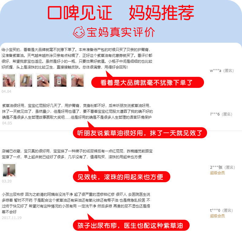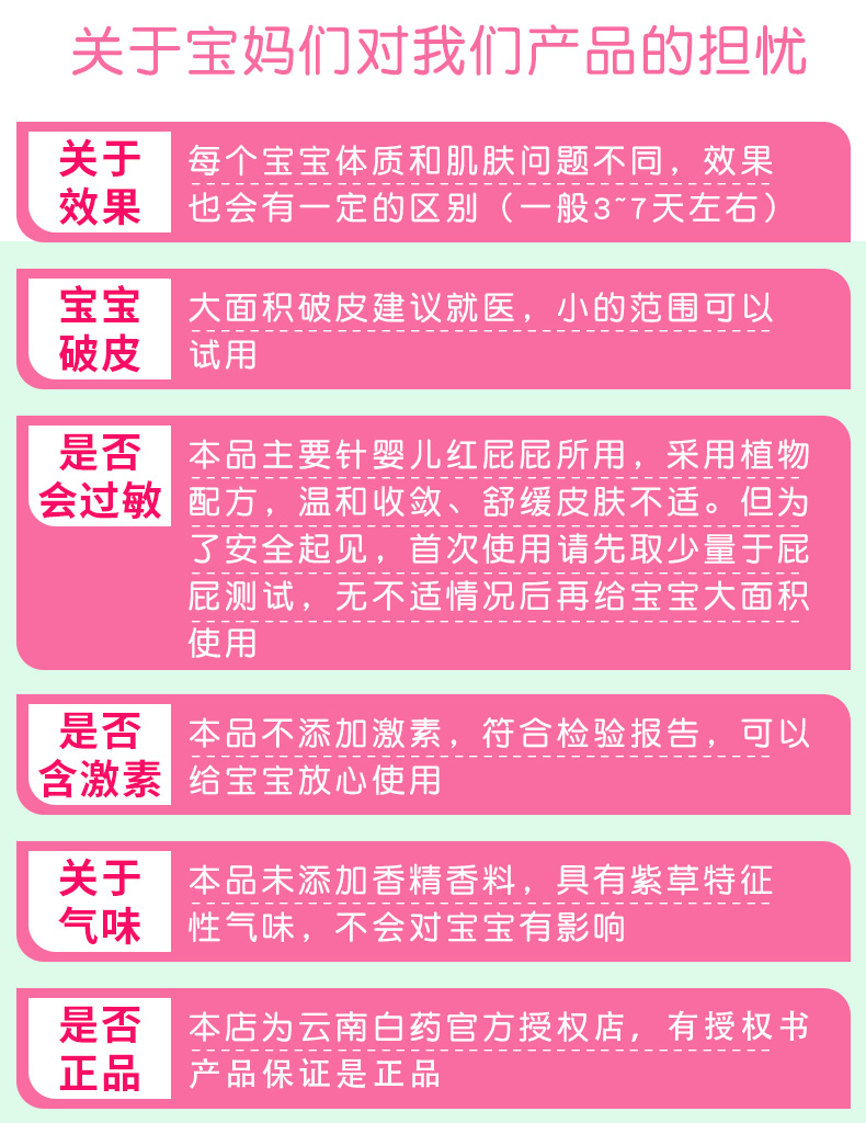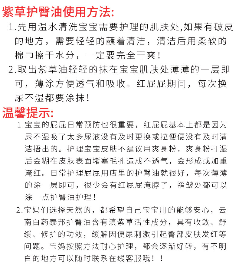 正品云南白药品牌授权,主要针对婴儿红屁屁所用,采用植物配方,温和收敛,不添加激素,符合检验报告,具有紫草特征性气味,滚珠设计,阻隔刺激,口碑见证,所有妈妈的推荐。