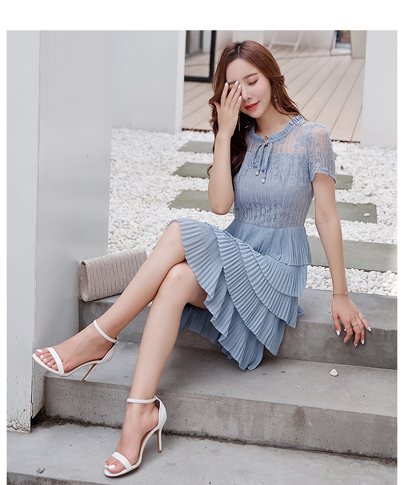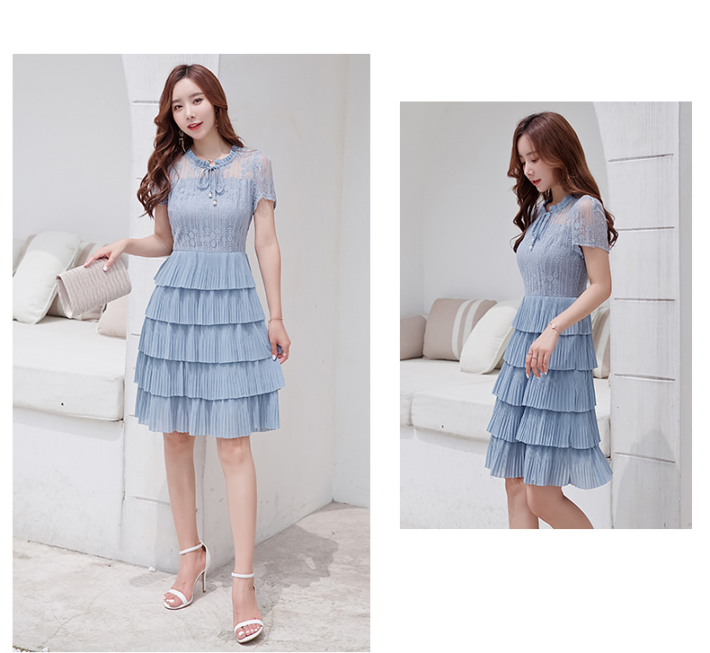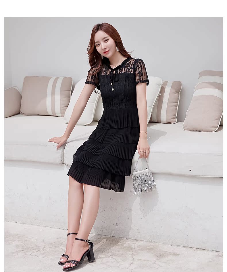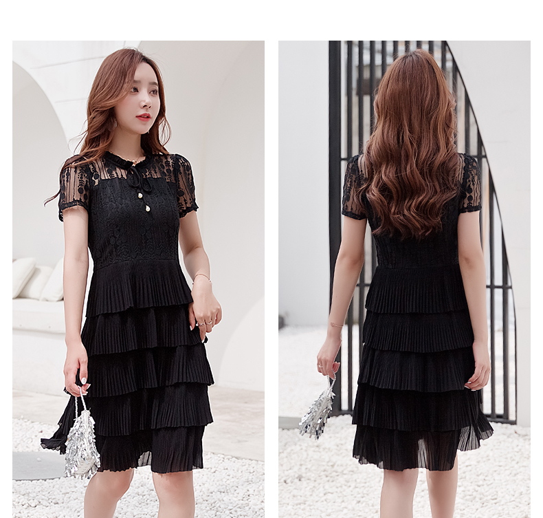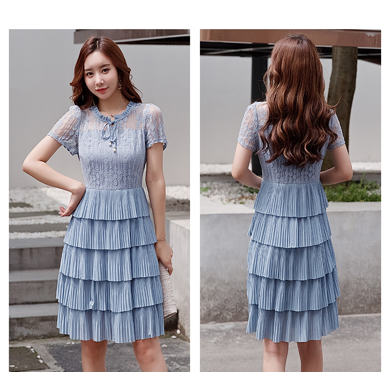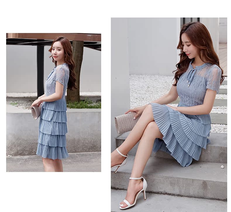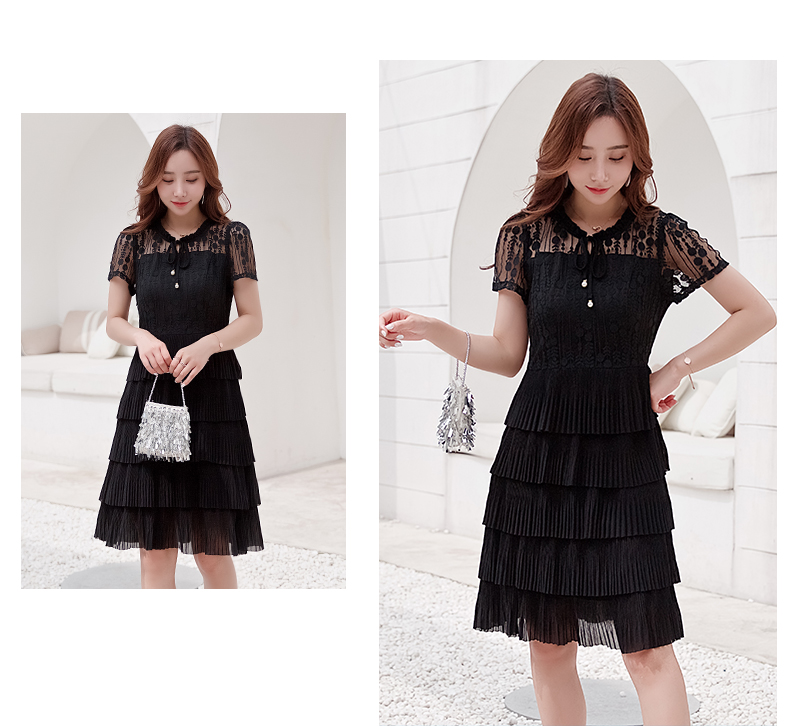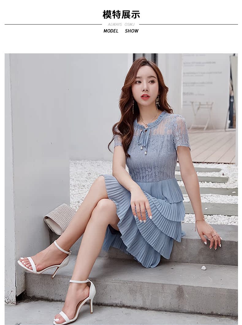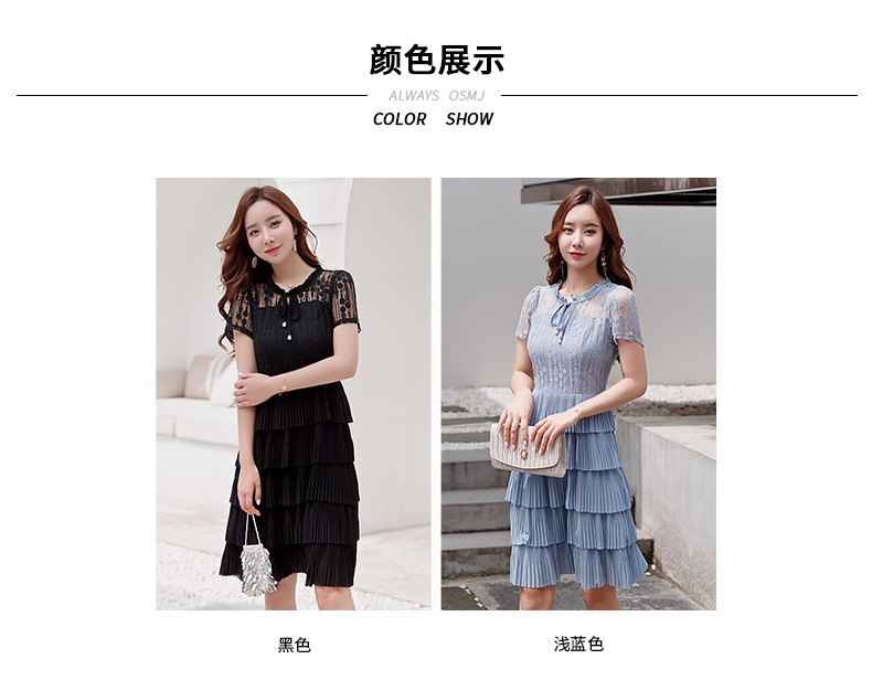 欧诗曼锦蕾丝连衣裙夏2019新款韩版气质中长款显瘦蛋糕裙