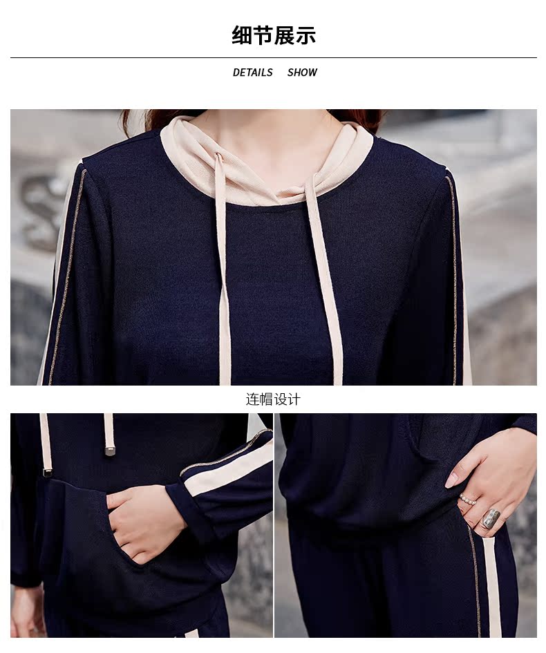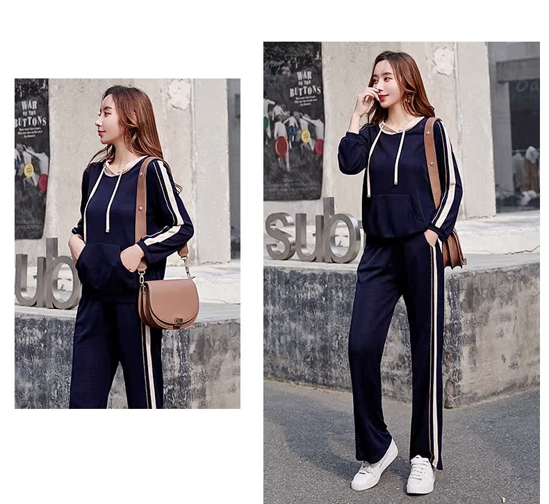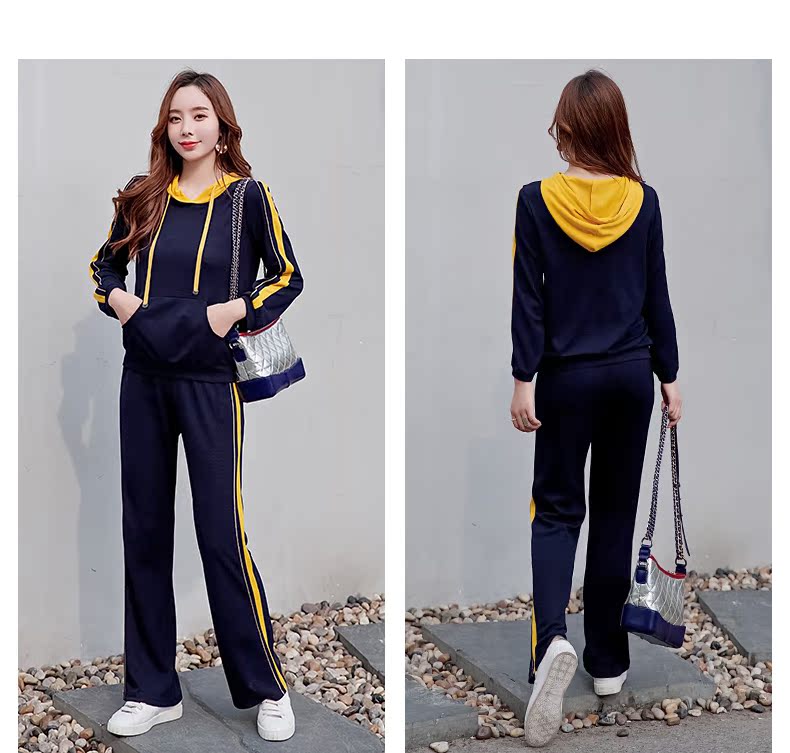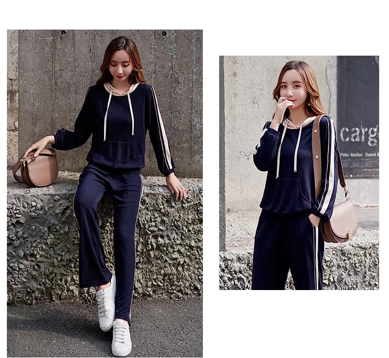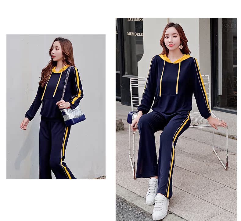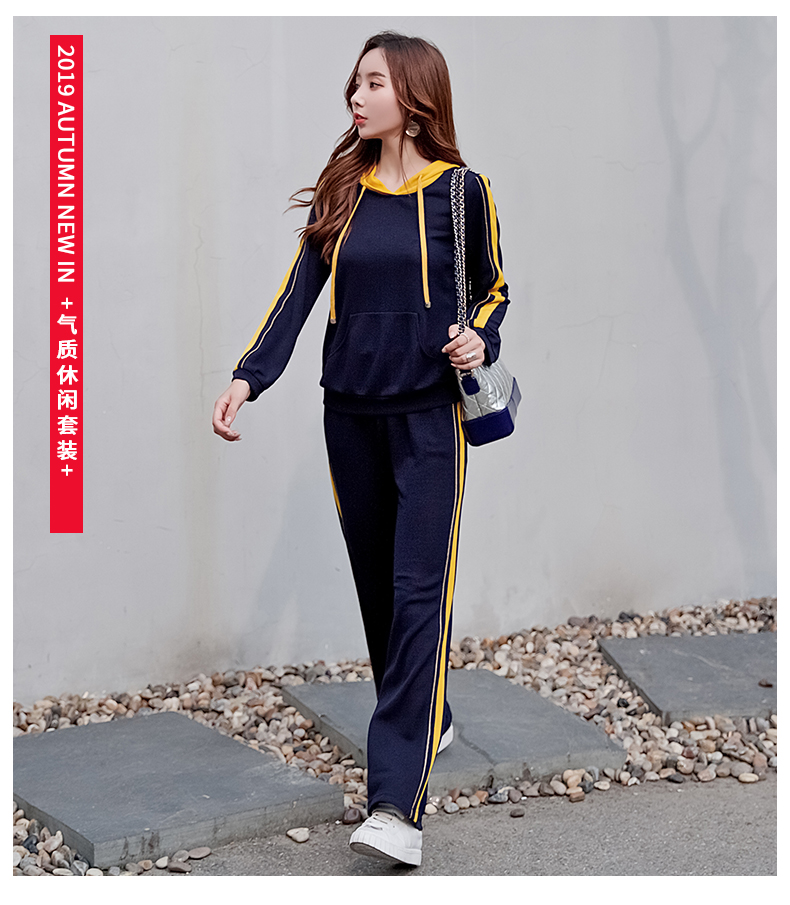 欧诗曼锦休闲运动套装2019新款秋韩版宽松针织长裤两件套