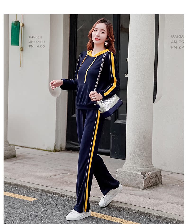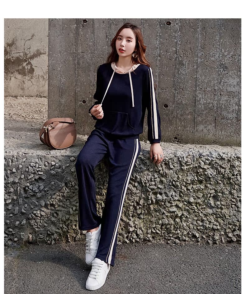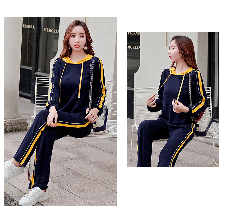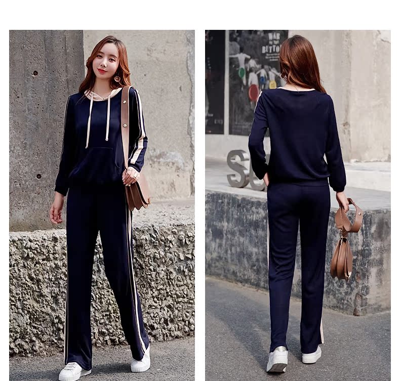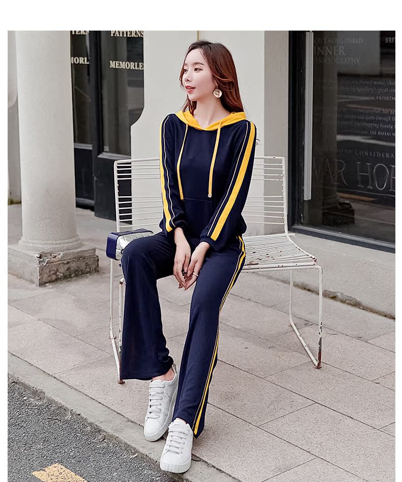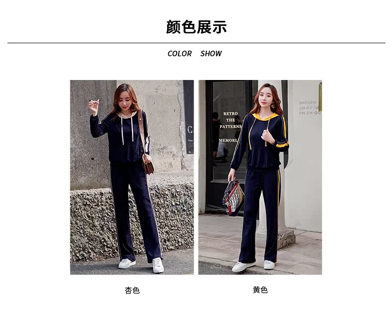 欧诗曼锦休闲运动套装2019新款秋韩版宽松针织长裤两件套