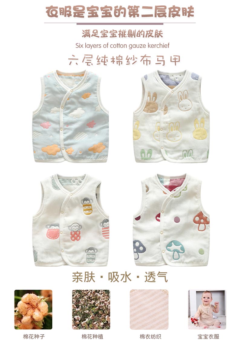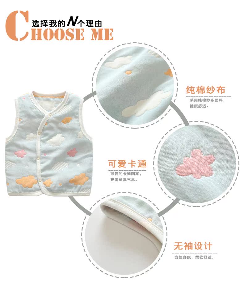 婴儿马甲春秋薄款男宝宝春装婴儿背心女宝宝棉纱布1-3岁护肚坎肩