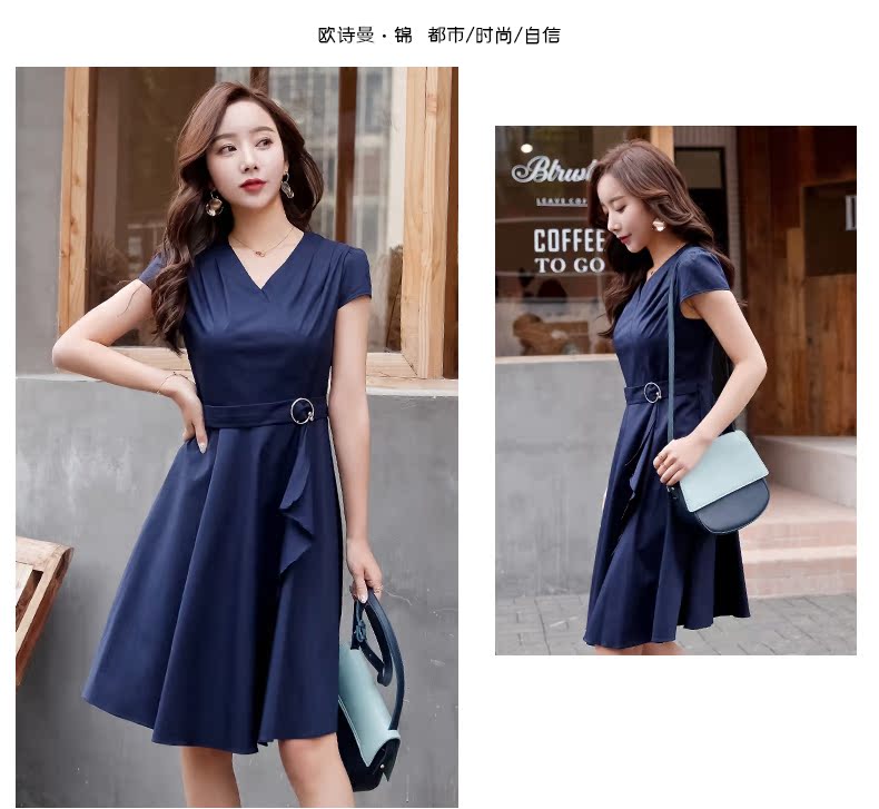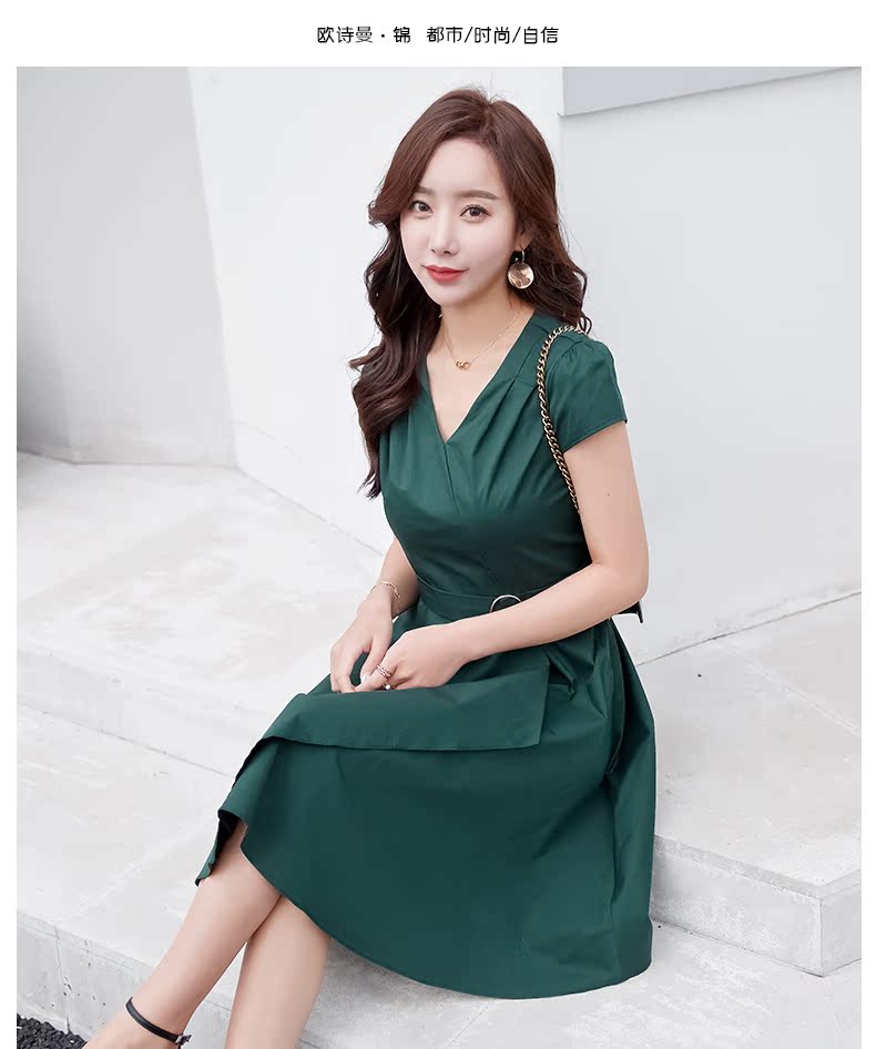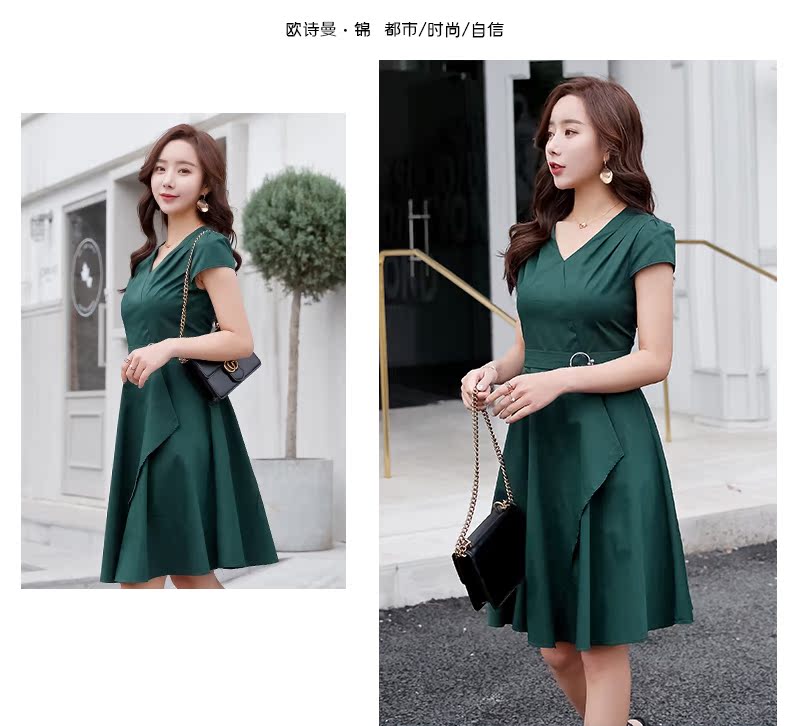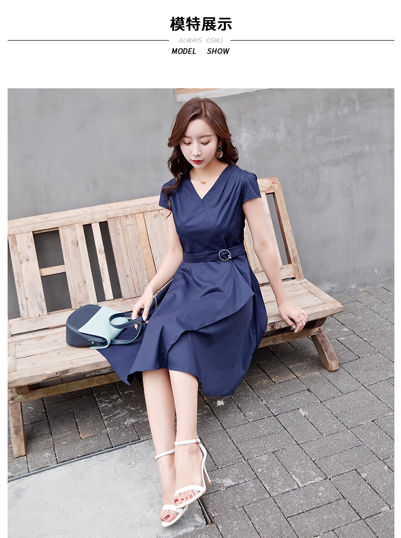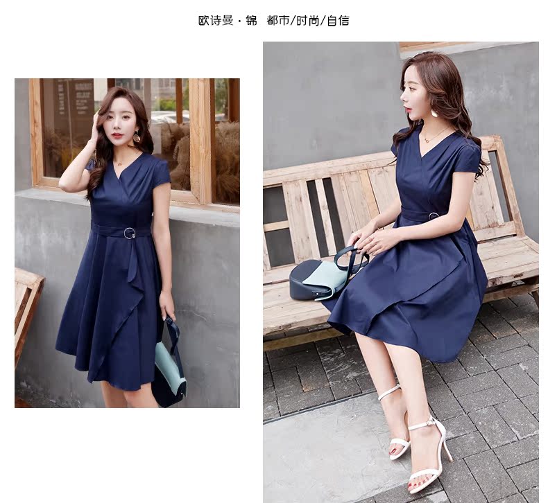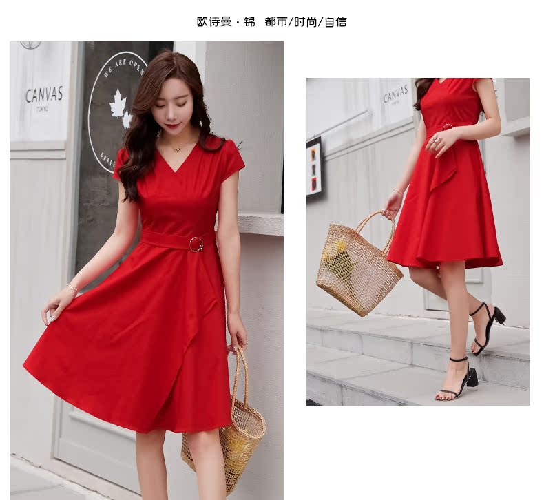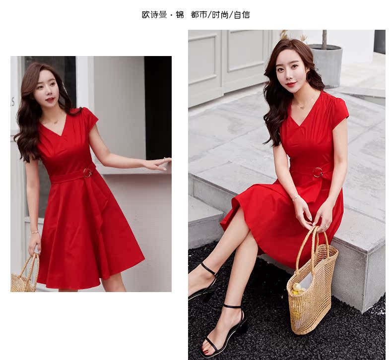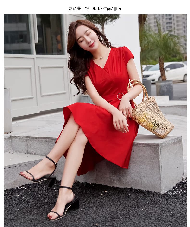 欧诗曼锦2019夏季新款气质冷淡风连衣裙韩范修身大摆裙