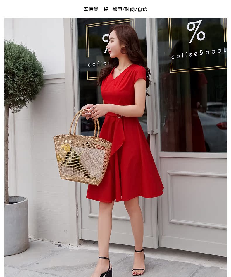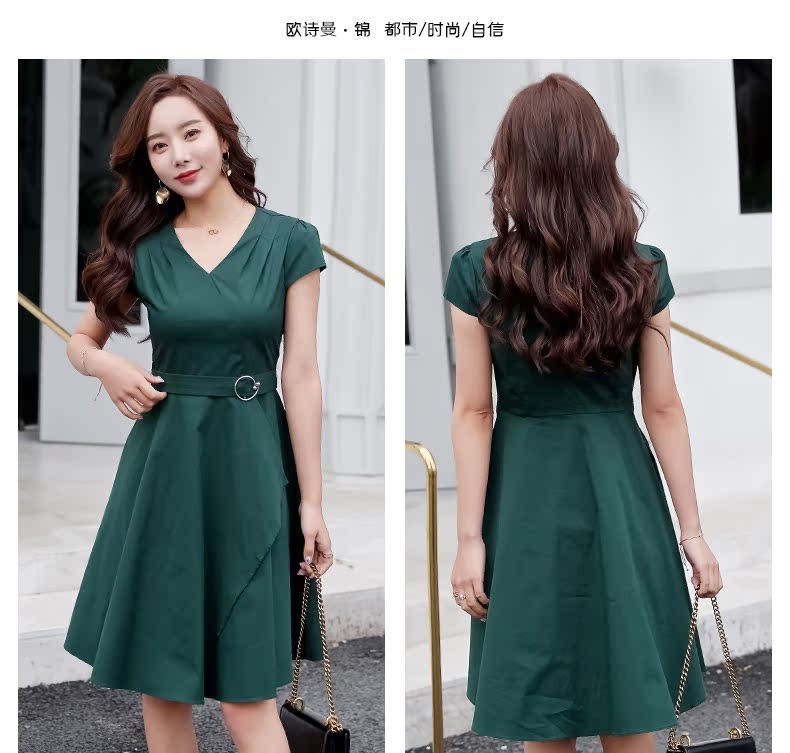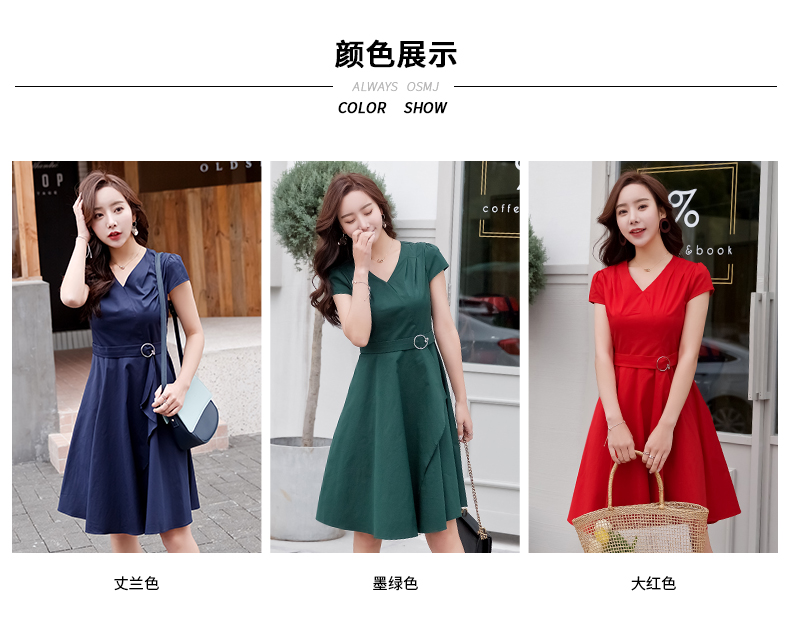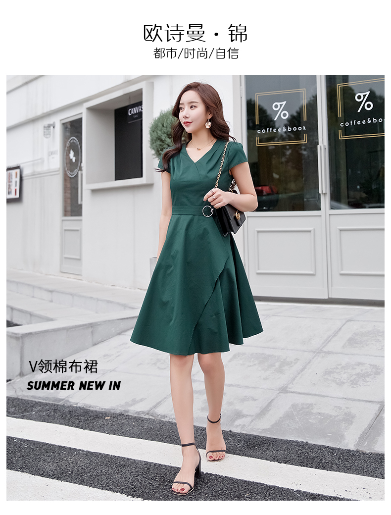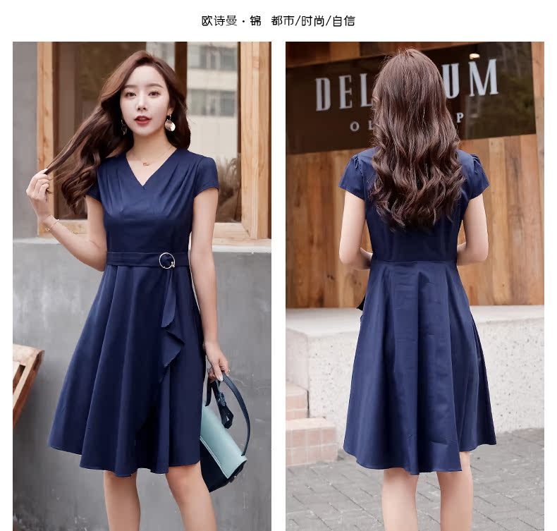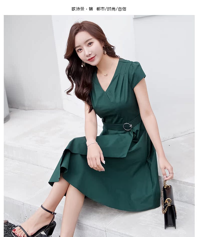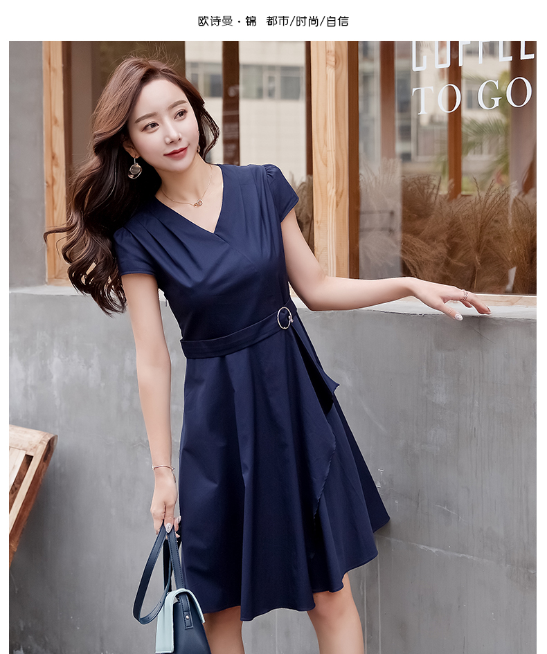 欧诗曼锦2019夏季新款气质冷淡风连衣裙韩范修身大摆裙