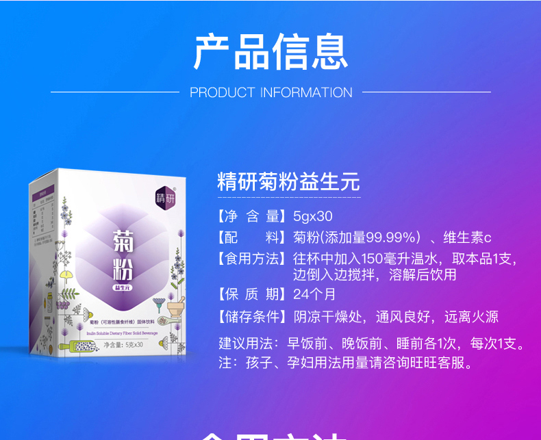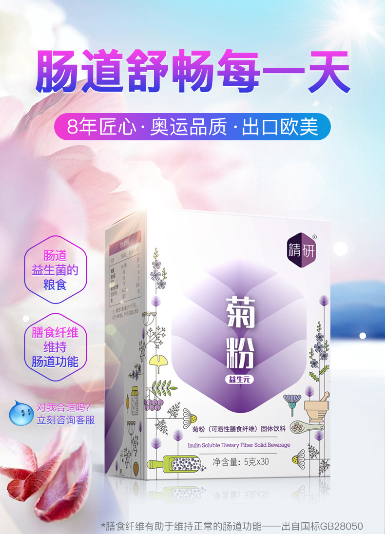 【买3送1】精研纯菊粉益生元菌成人膳食纤维非水苏糖低聚果糖