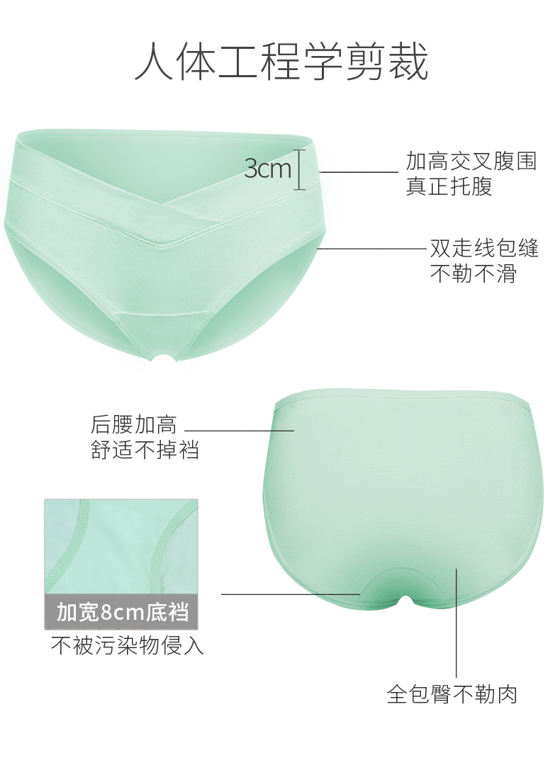 3条装孕妇内裤,优质的精梳棉面料,孕产通用低腰托腹,双V托腹,柔软透气,后腰加高,有效防滑,包臀设计,环保印染,不掉色不褪色,超值实惠【赠运费险】