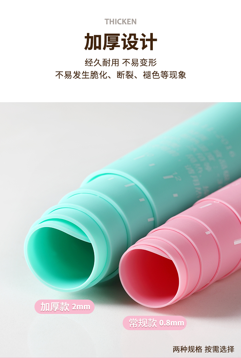 【送切面刀】采用硅胶材质,不溶于水和各种溶剂,化学性质稳定,安全放心,一体成型设计,随意折叠不变形,收纳方便,厨房必备!