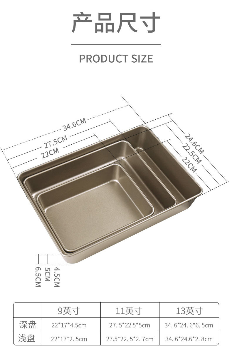 不沾家用烤盘烤箱用雪花酥牛轧糖饼干古早蛋糕卷面包模具长方形盘