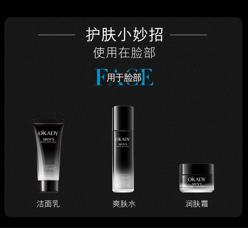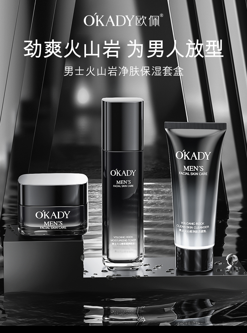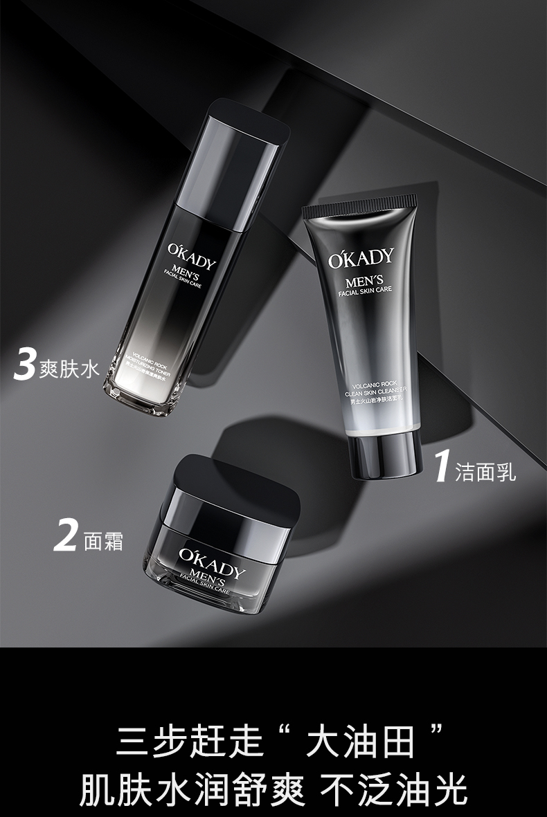 OKADY 男士三件套盒洗面奶水乳控油补水保湿清爽洗脸保养面部护理