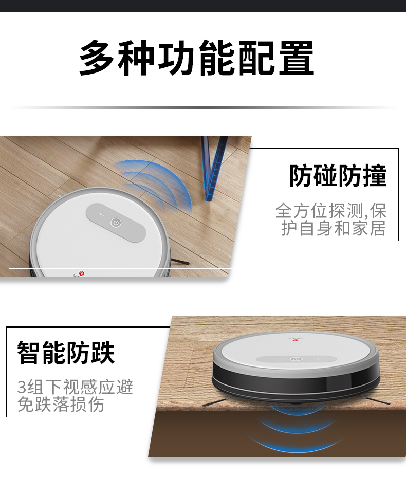 送天猫精灵,智能扫拖地擦地吸尘一体机三合一,新技术,新工艺,FreeMove解决防卡死,更聪明高覆盖,APP远程控制,智能清扫,搭载红外自动驾驶技术,保护家具,防止跌落,更聪明高覆盖