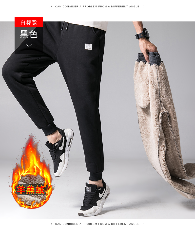 2019男士冬季羊羔绒裤子休闲百搭男学生韩版修身加绒加厚运动裤潮