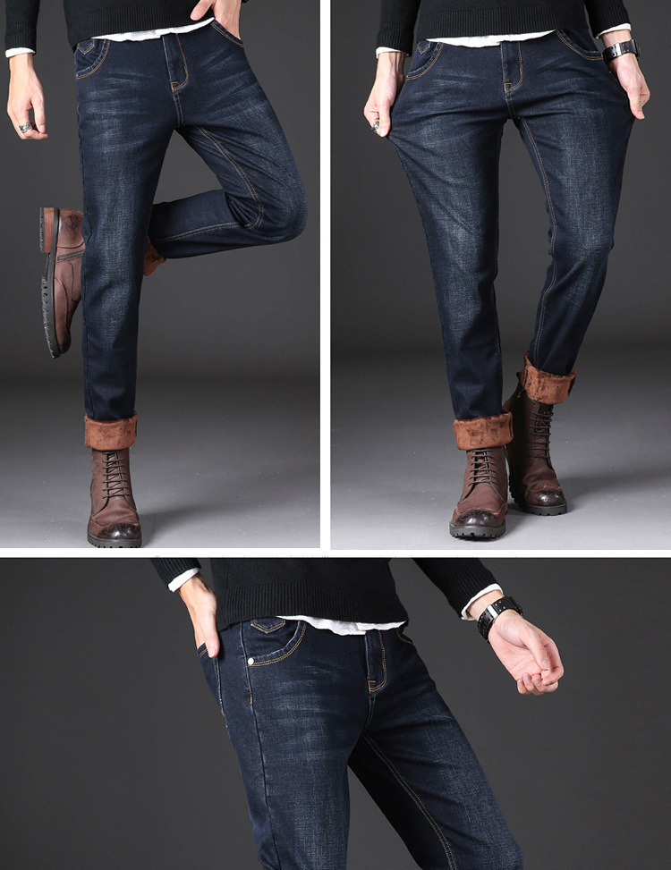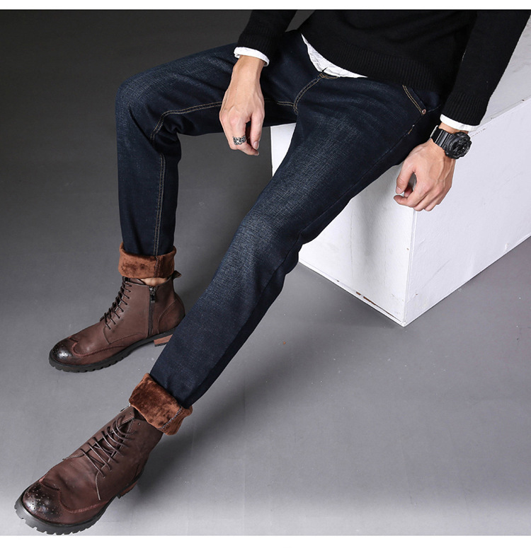 男士新款2019冬季加绒加厚牛仔裤直筒商务男大码时尚休闲牛仔裤潮
