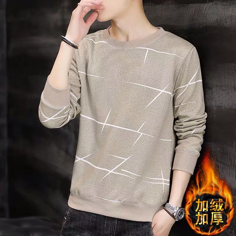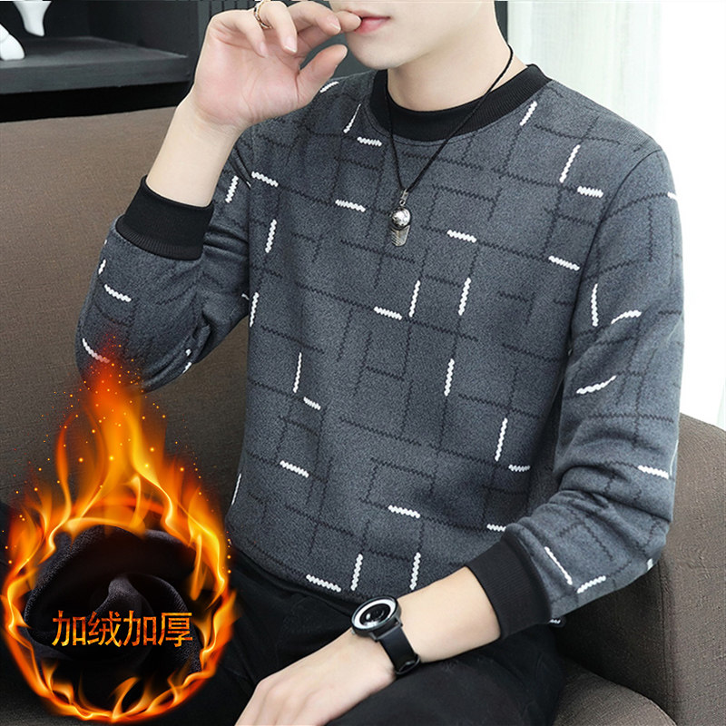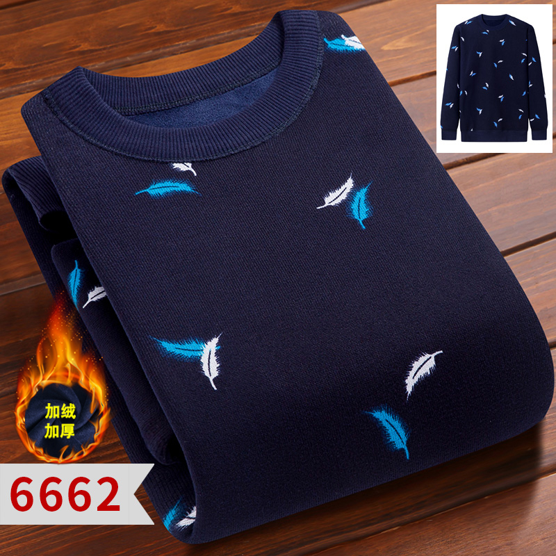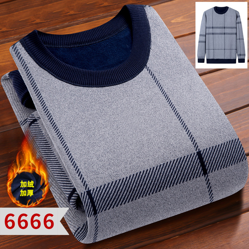 冬季中青年爸爸毛衣韩版圆领保暖打底针织衫长袖内衣加绒加厚线衣