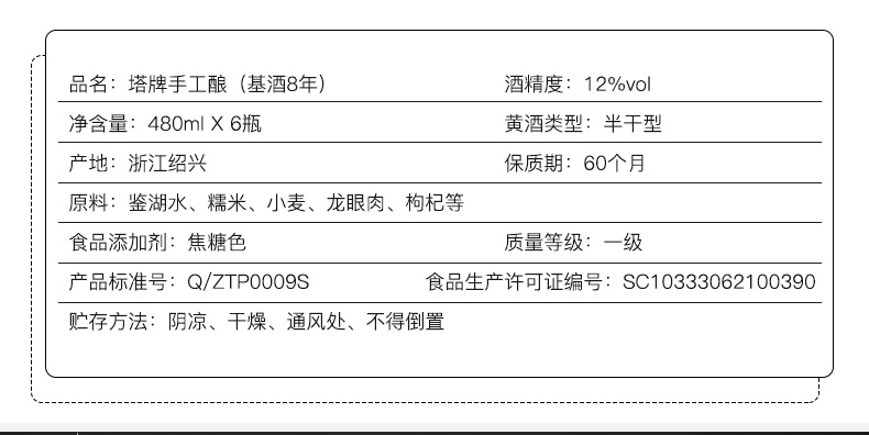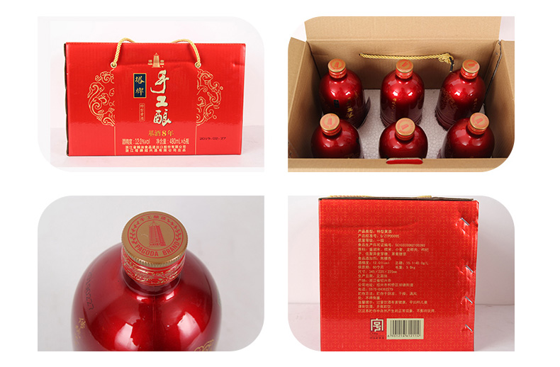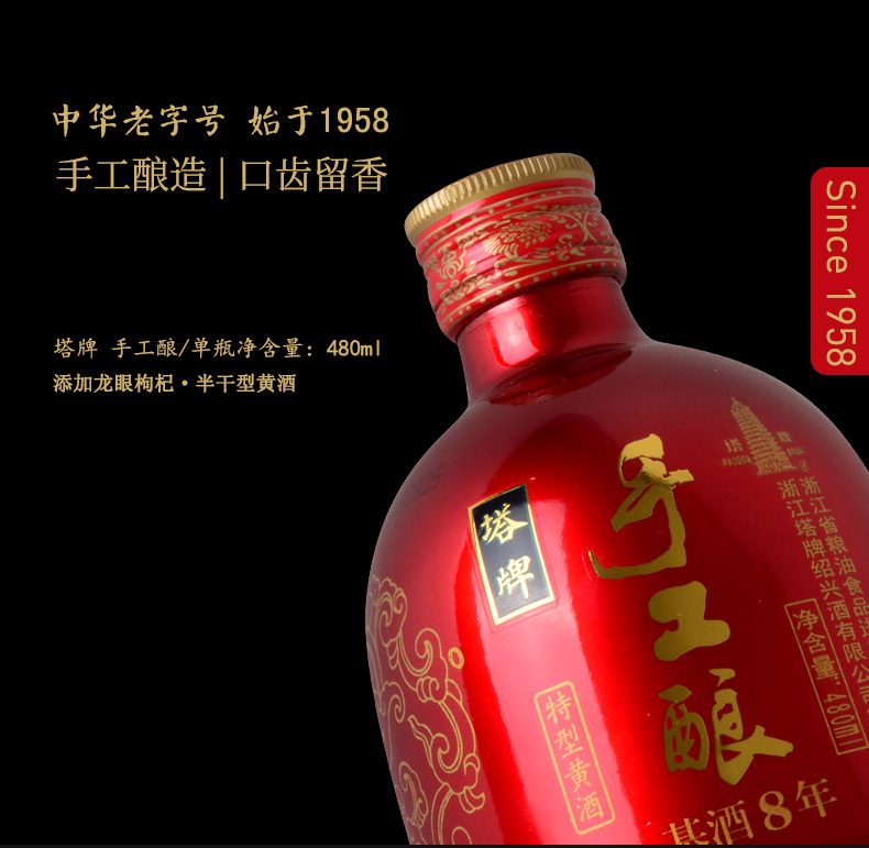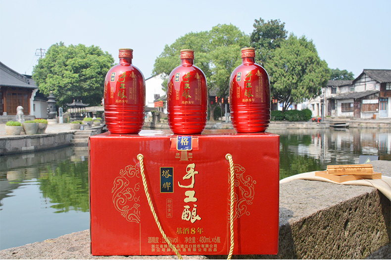 塔牌基酒八年陈酿绍兴黄酒480ml*6瓶礼盒装花雕酒糯米酒加饭老酒