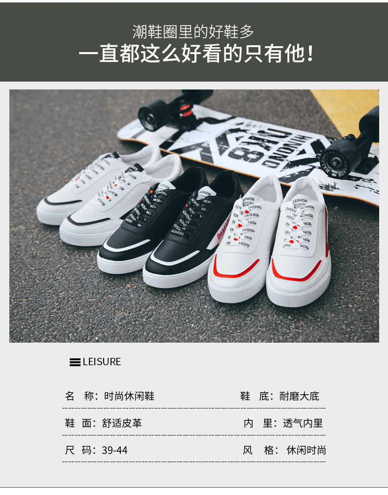 【超划算!】潮流小白鞋,柔软皮面,舒适贴足,防滑耐磨,休闲百搭,时尚有型,秋季潮男百搭款!多款多色可选!