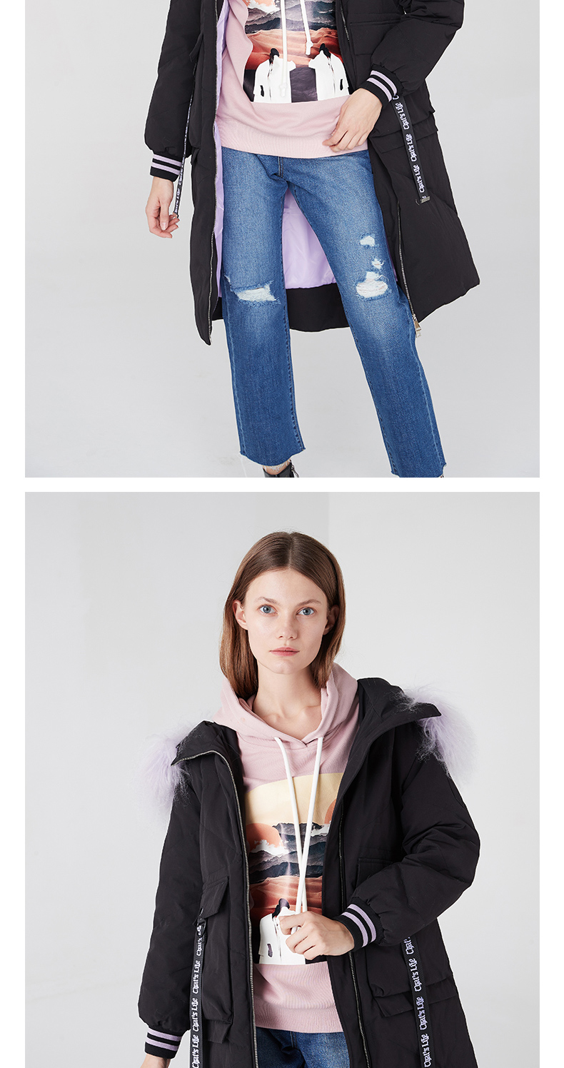 CIAO冬季羽绒服女士新款连帽毛领时尚宽松中长款外套女