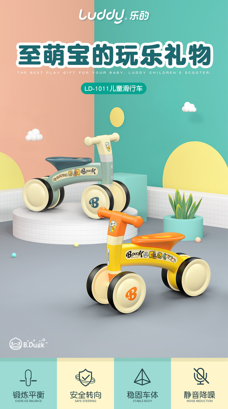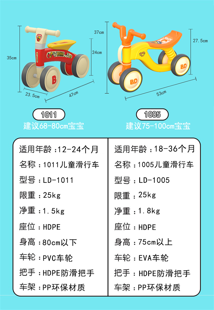 儿童学步车滑行车,2色可选,便携轻型,助力滑行,提升宝宝平衡力!