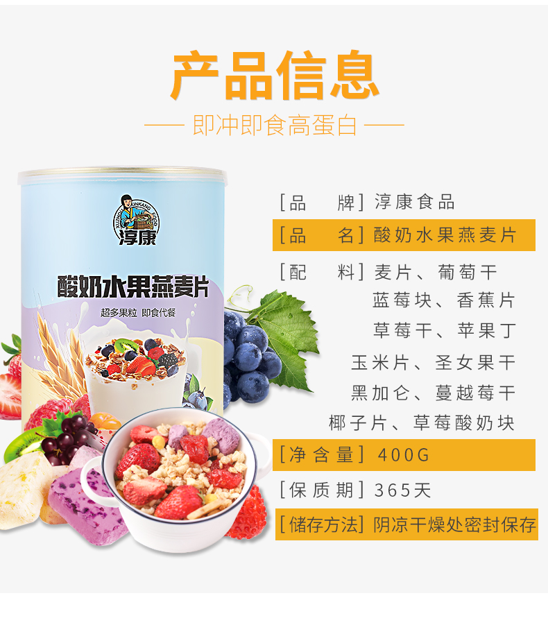 淳康代餐烘焙水果燕麦片可干吃即食酸奶果粒麦片早餐冲饮拌酸奶