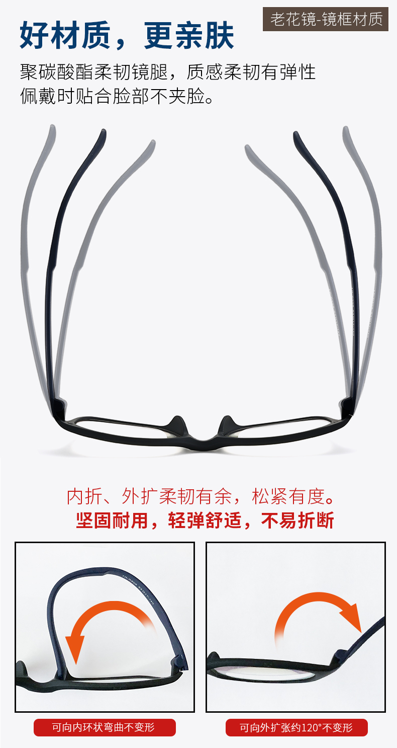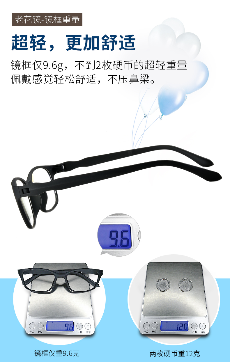 高档金属合金,做工精致,加硬树脂镜片,超轻便携,看字清晰,戴上超舒服,方便收纳,一支折不断的老花镜!男女通用。