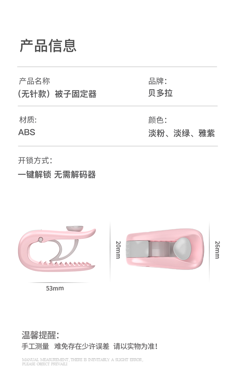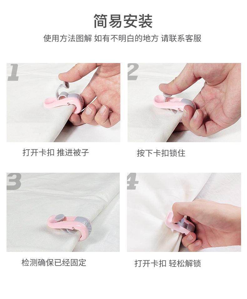 【一盒六只,一只顶两只】全面升级第三代双头被子固定器,一被子不分离,一键解锁,时尚外观,无针固定不伤被哦更稳固,更舒适适用于99%的被子,拒接冰冷,拒接不安全~~【赠送运费险】