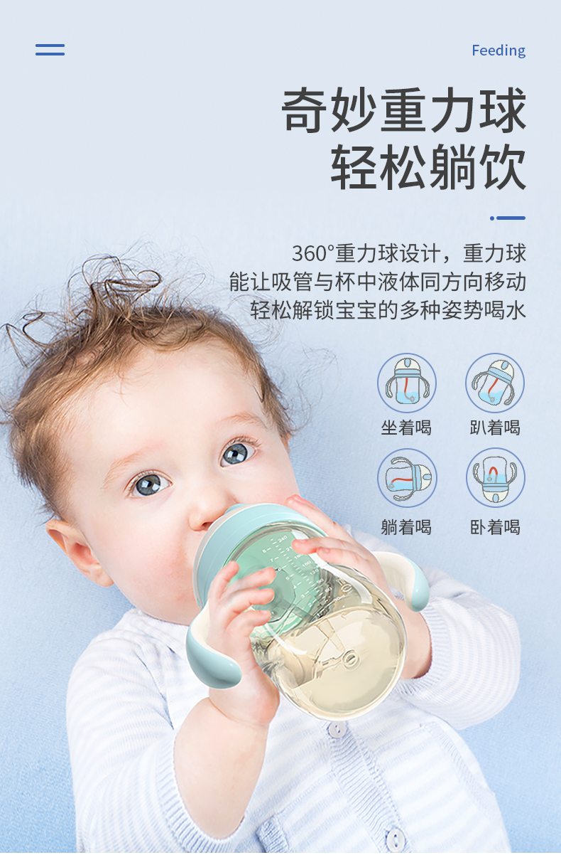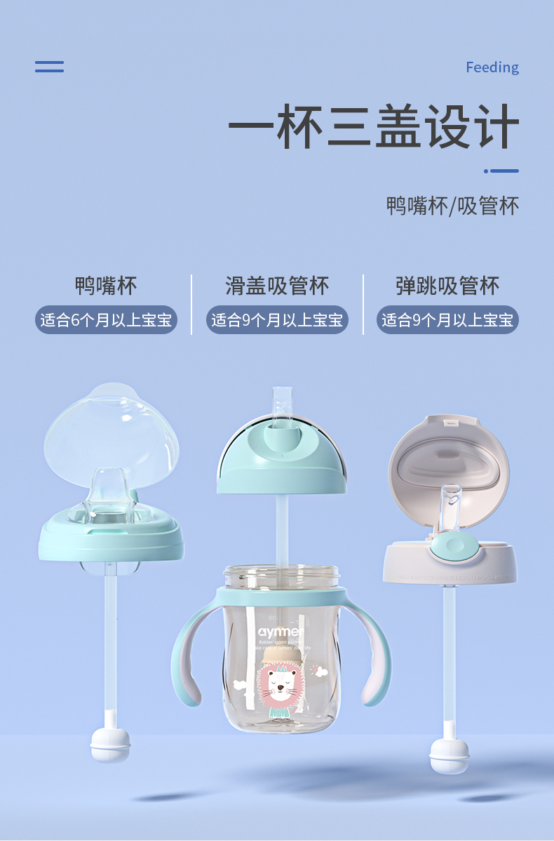 【爱因美旗舰店】宝宝吸管杯,PPSU材料防呛防漏鸭嘴杯,带吸管重力球学饮杯!V型吸管软糖般硅胶吸嘴,不含双酚A,360°旋转手柄,耐高温消毒可使用五年!品牌承诺宝宝健康,妈妈安心!【促销34元】