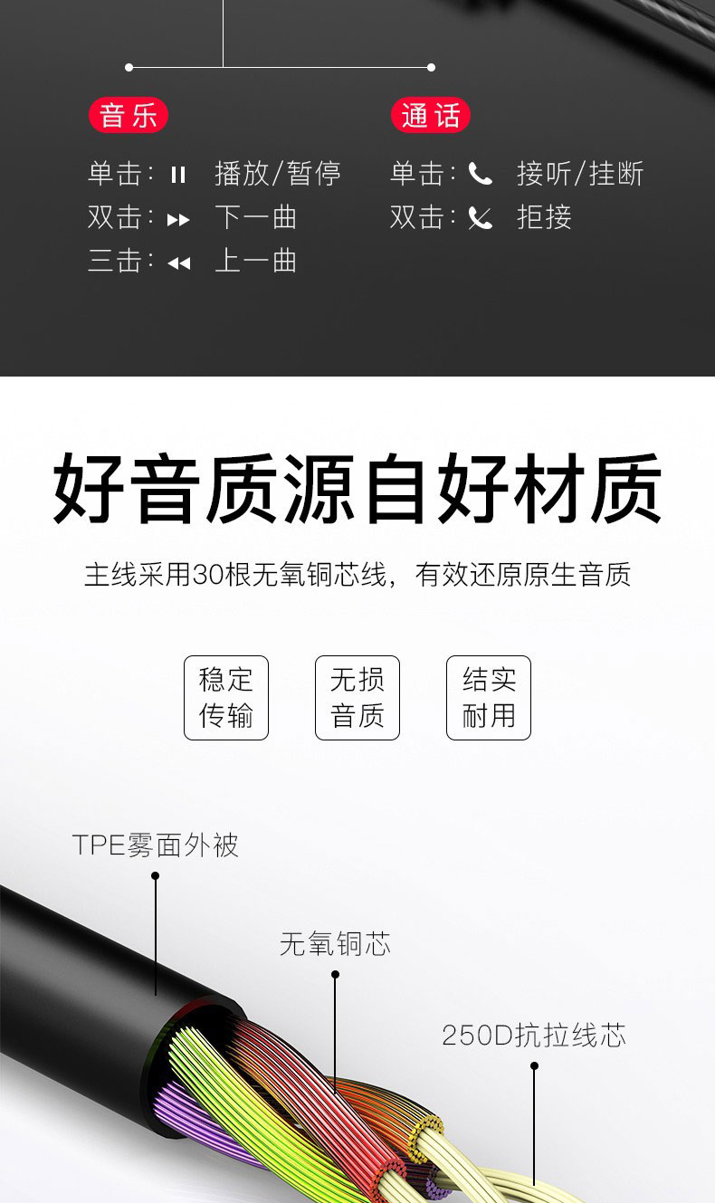 手机专用,震撼环绕重低音,内置降噪清晰通话,HIFI高品质音效,舒适入耳,运动不脱落,享受高品质音乐【赠运费险】