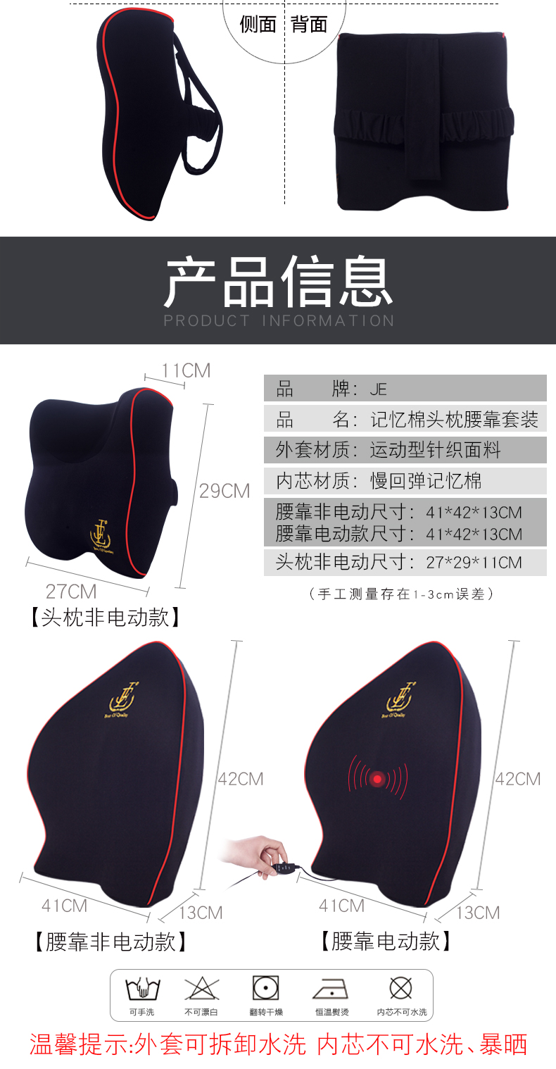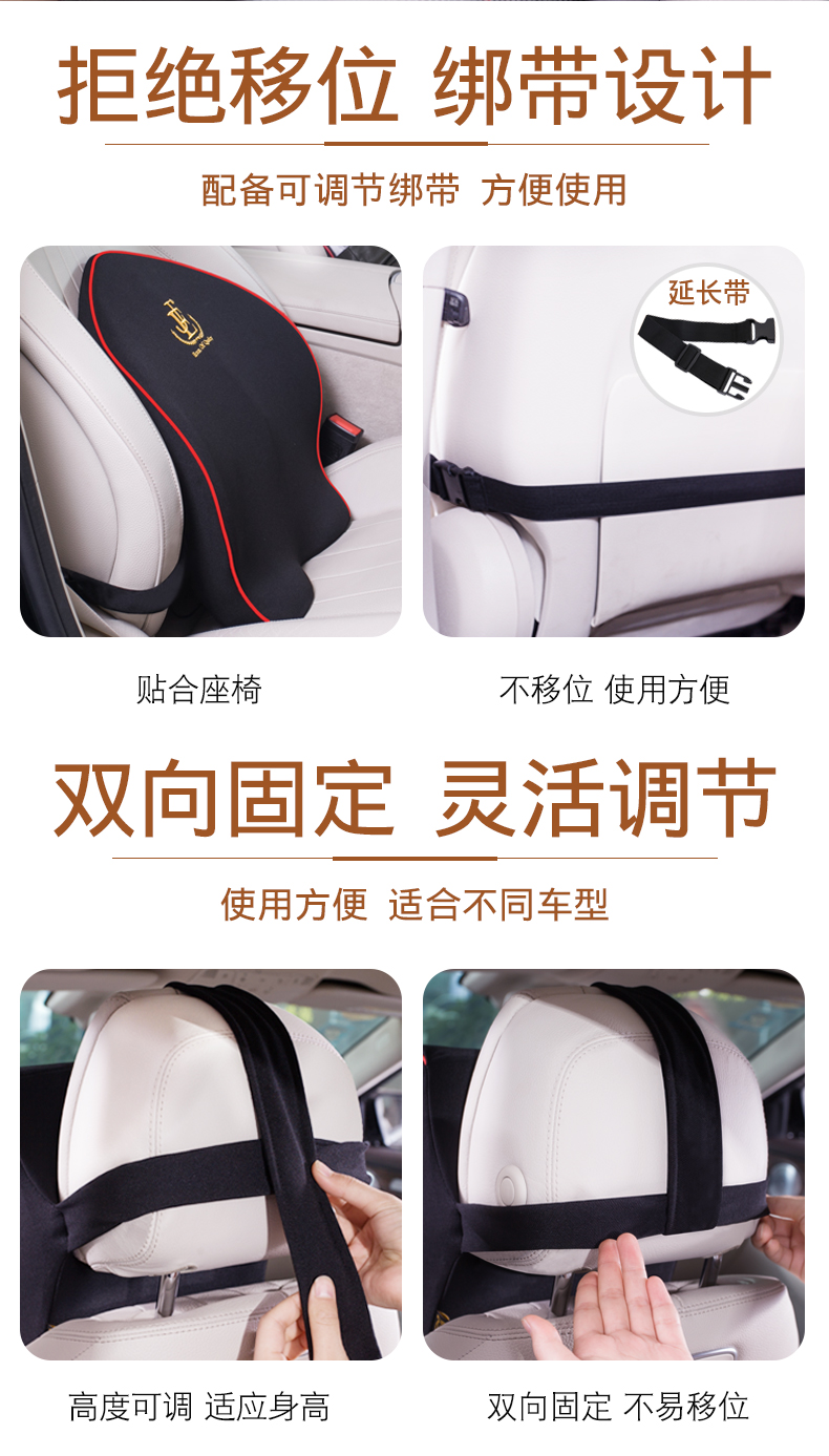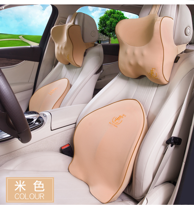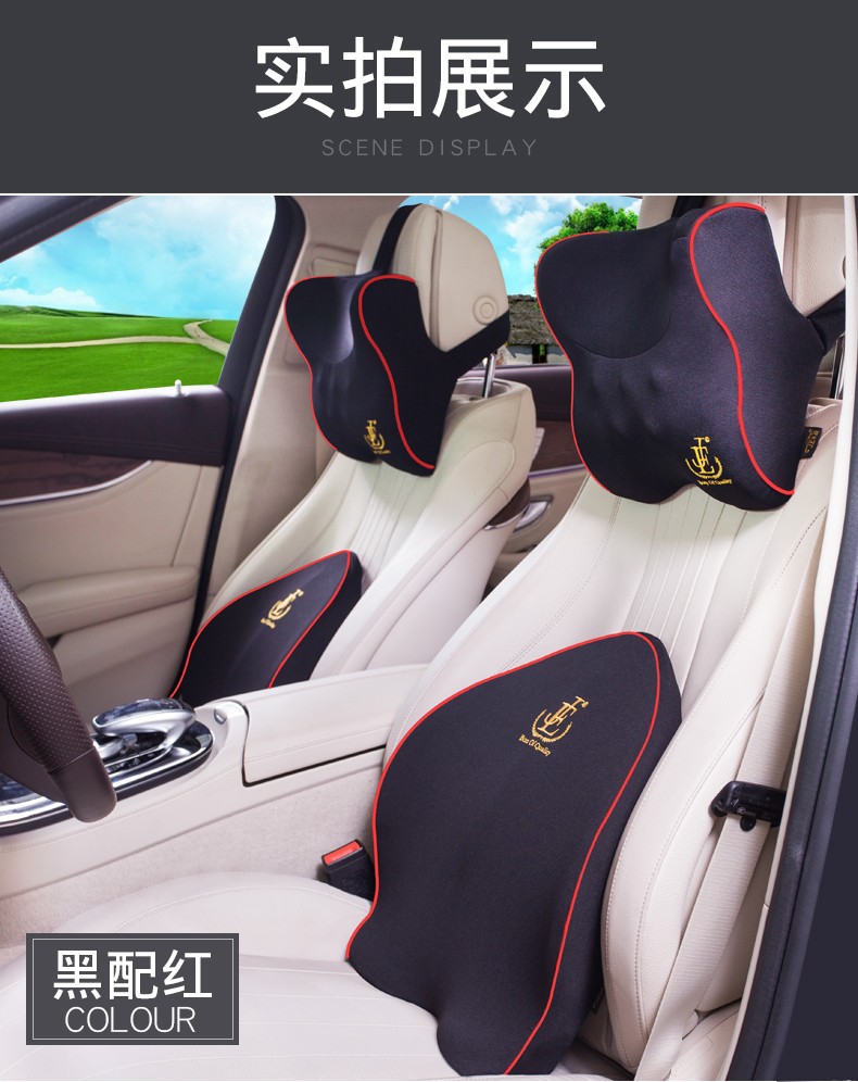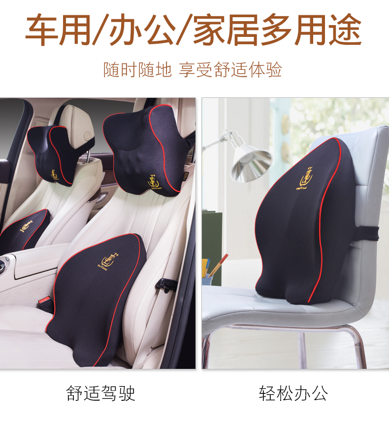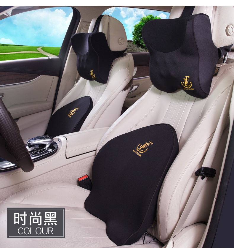 汽车腰靠护腰靠垫腰垫记忆棉靠背垫电动按摩座椅腰枕车用头枕套装