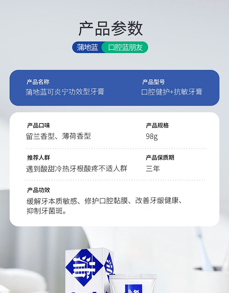 蒲地蓝可炎宁抗敏牙膏98g,缓解牙本质敏感,牙龈酸甜冷热辣脱敏牙膏,缓解牙齿敏感,呵护牙龈,强健牙齿!