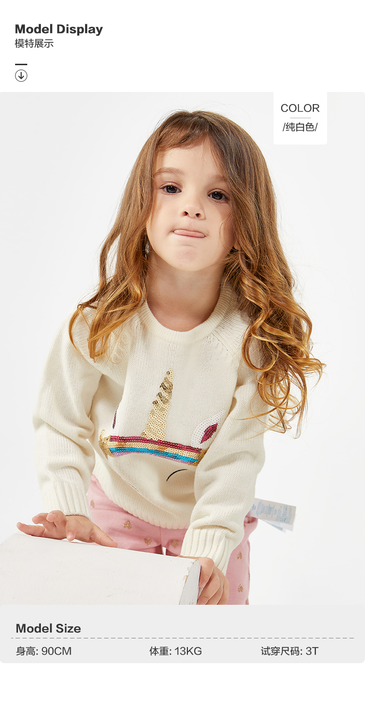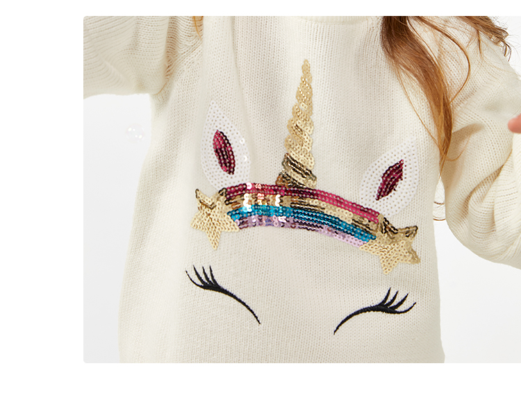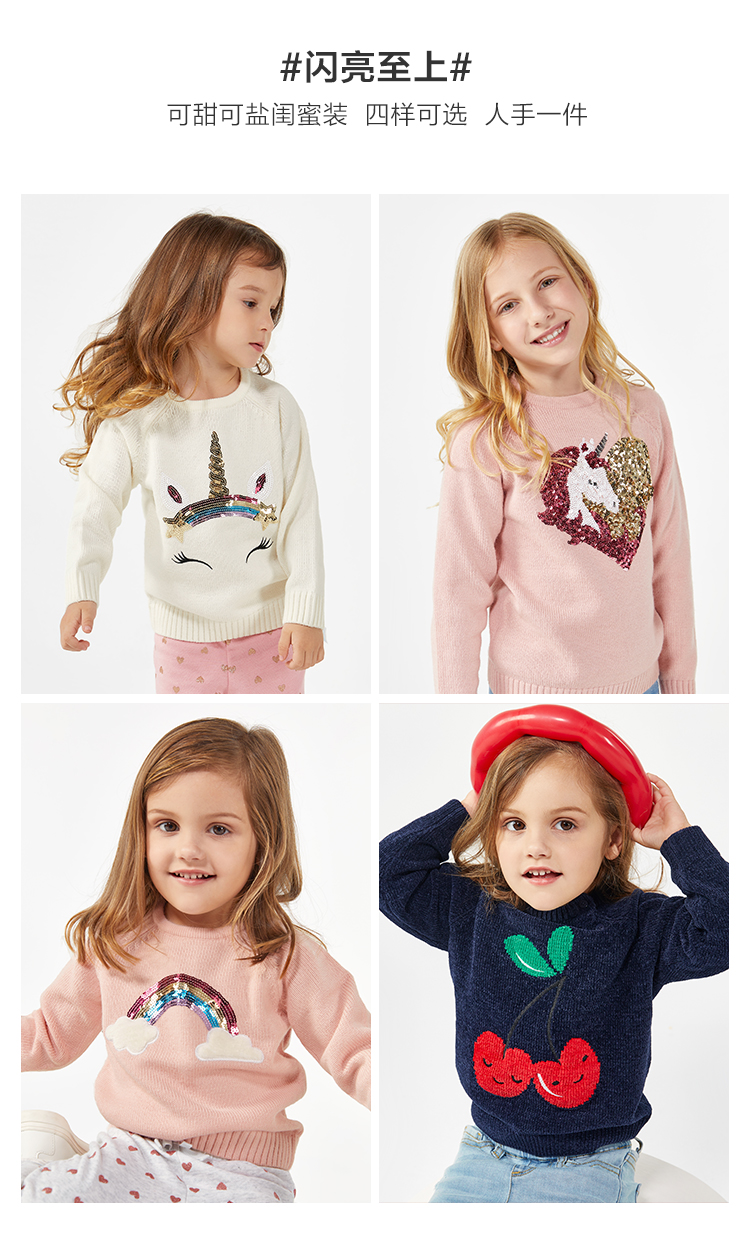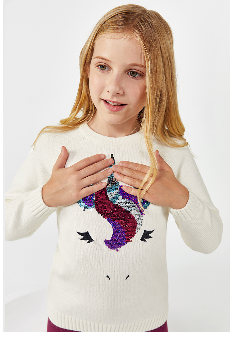 北美绮童堡女童亮片独角兽保暖厚实针织衫套头毛衣