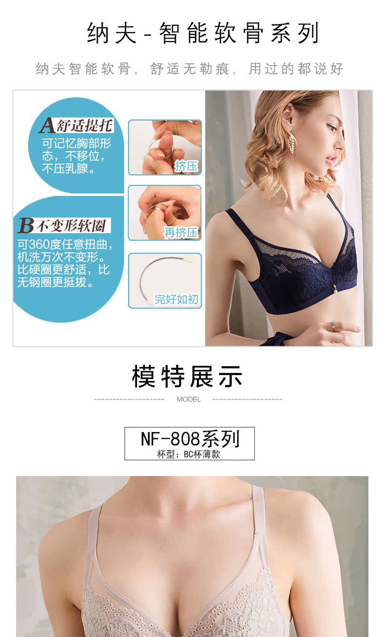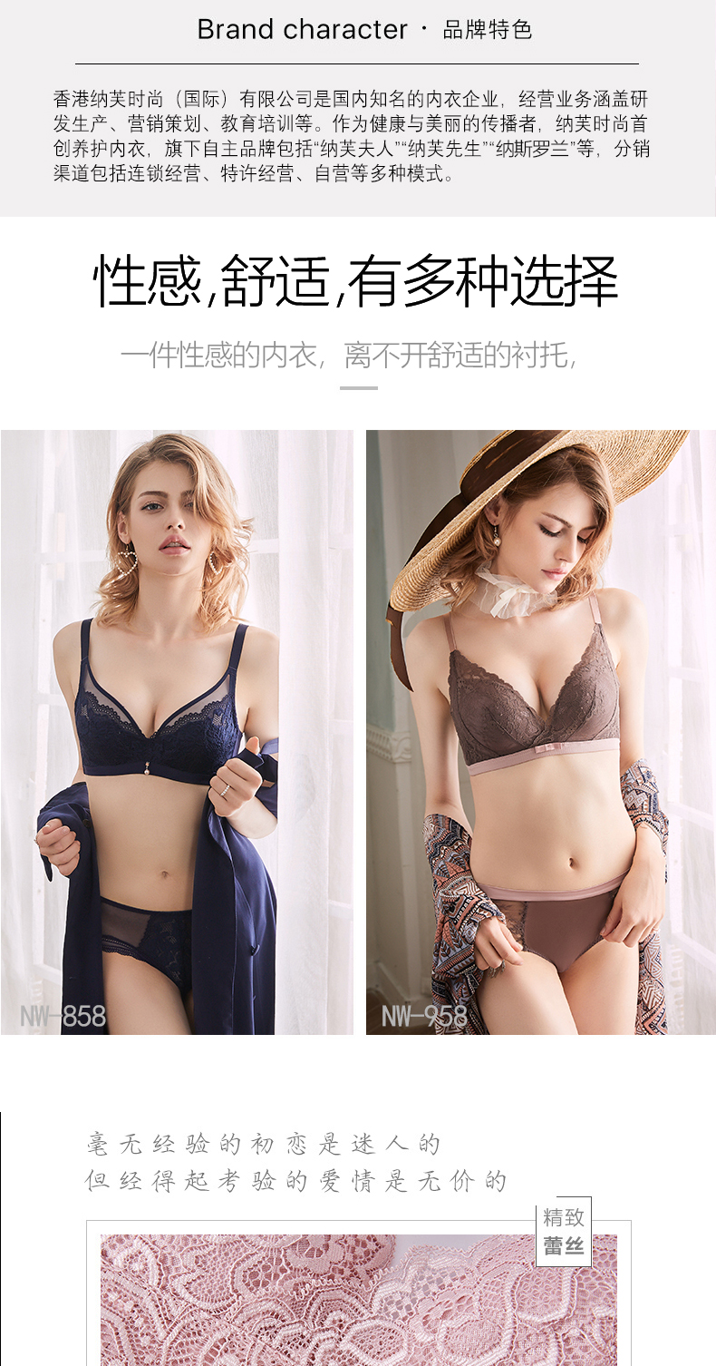 纳芙夫人,刺绣印花,性感聚拢,凸显女人妖娆十足的韵味,加宽肩带,防止下垂,舒适自然。无钢圈,线下商场同款,舒适,不勒不累。