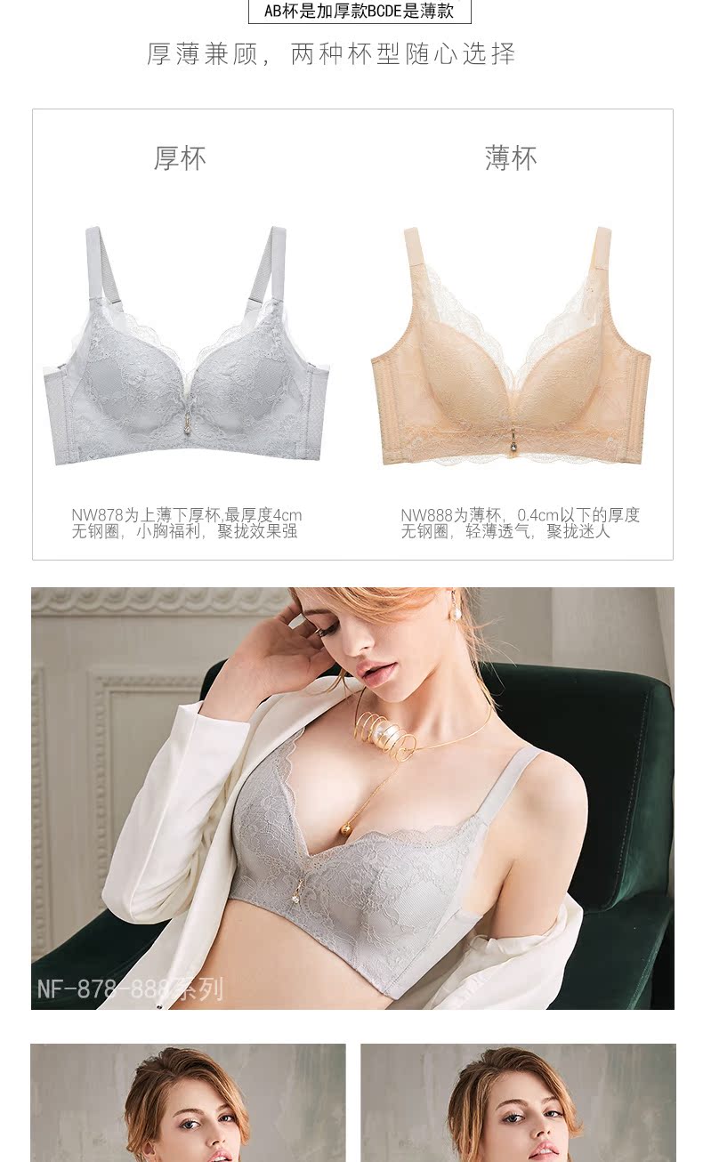 纳芙夫人文胸无钢圈女聚拢小胸性感上托调整型无痕内衣女薄款胸罩