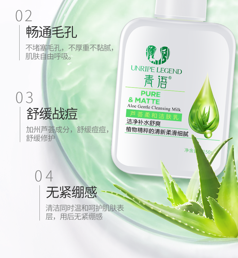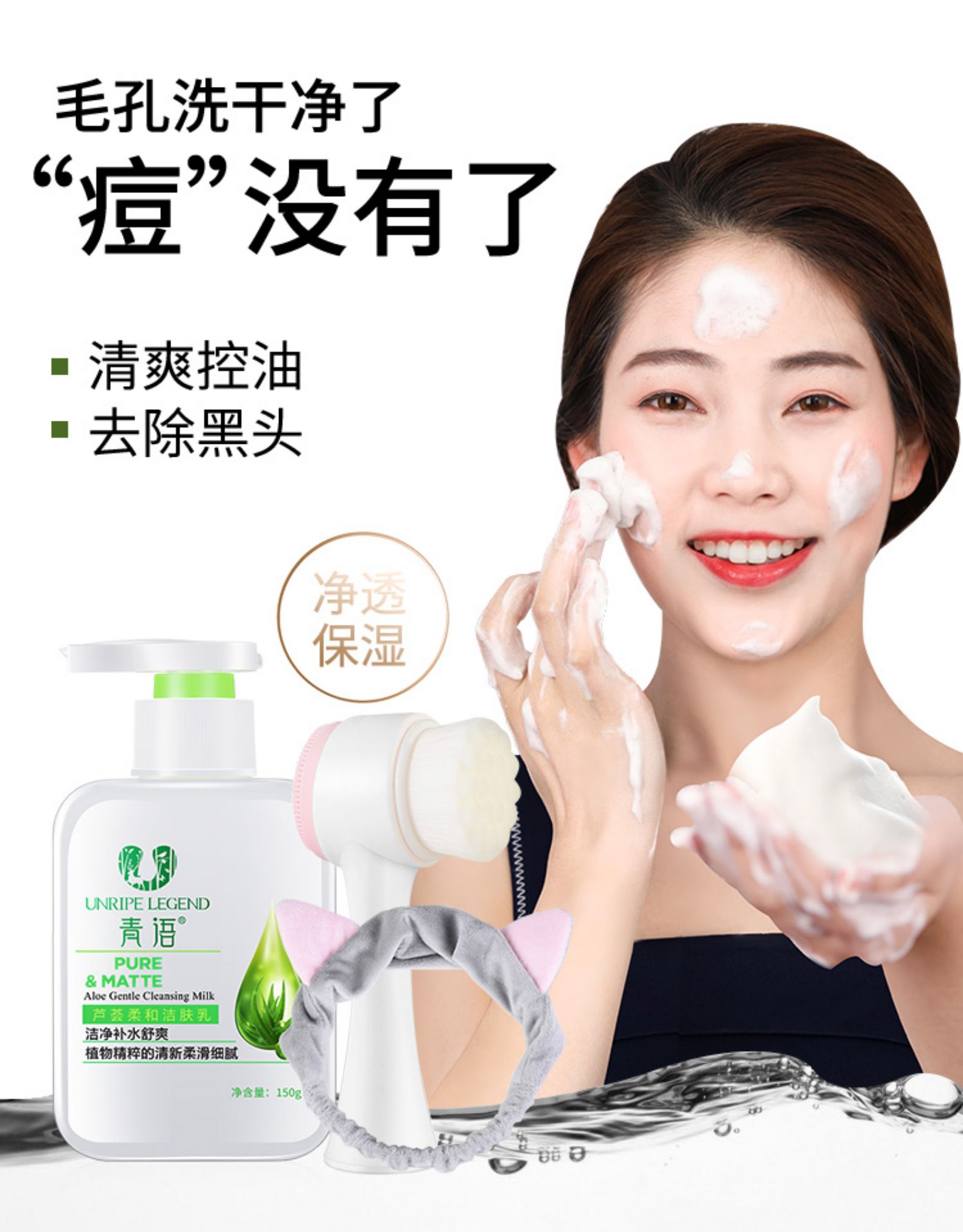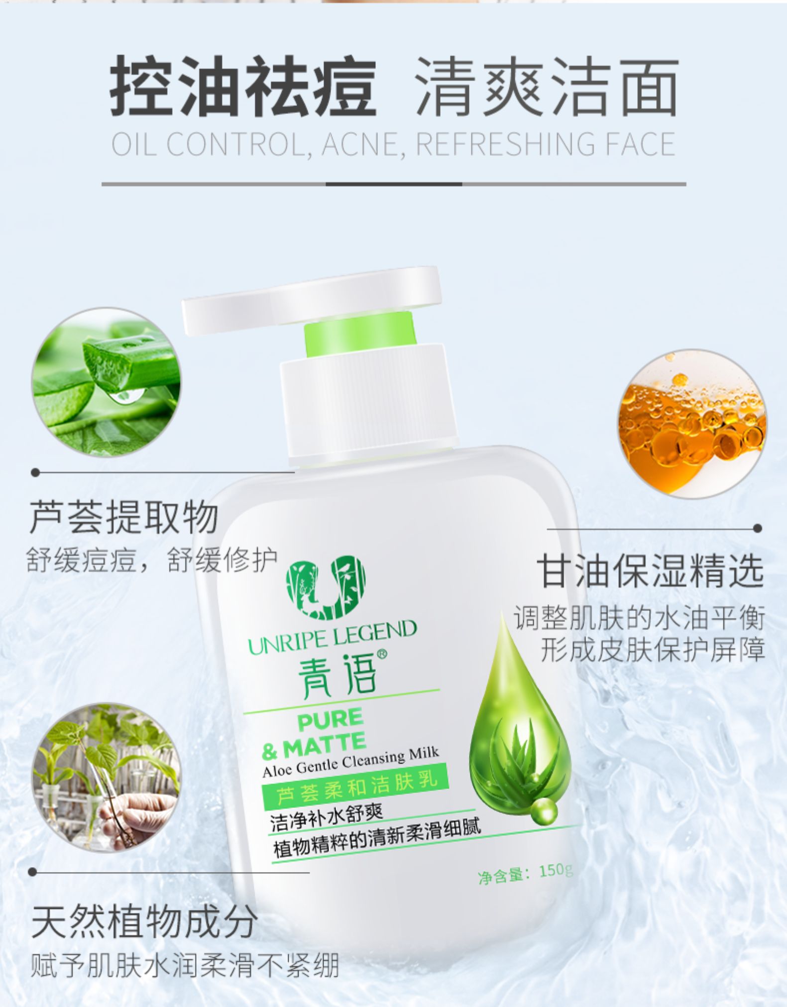 青语芦荟洗面奶女氨基酸深层清洁控油补水祛痘去黑头螨虫学生款男