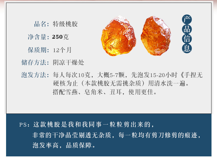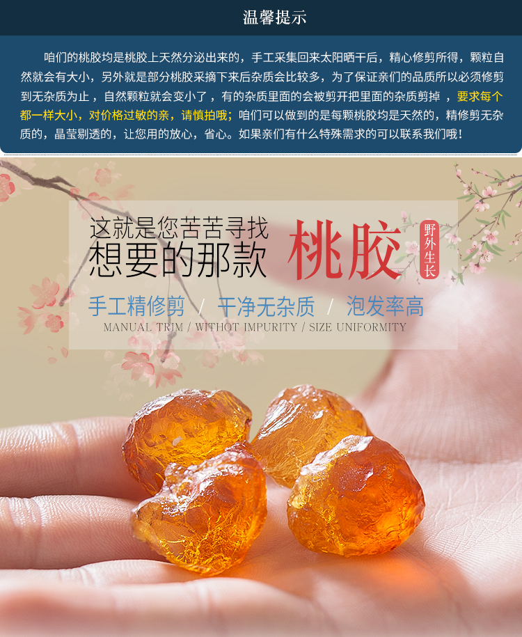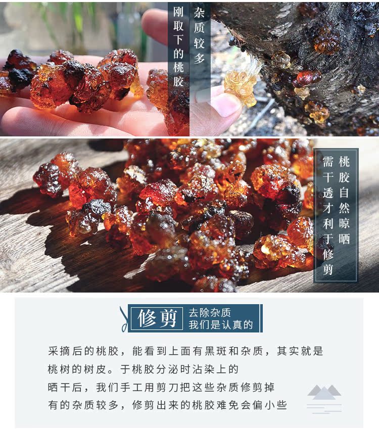 【无杂质桃胶250g】天然野生云南旗艦店正品特级桃浆散装非一斤