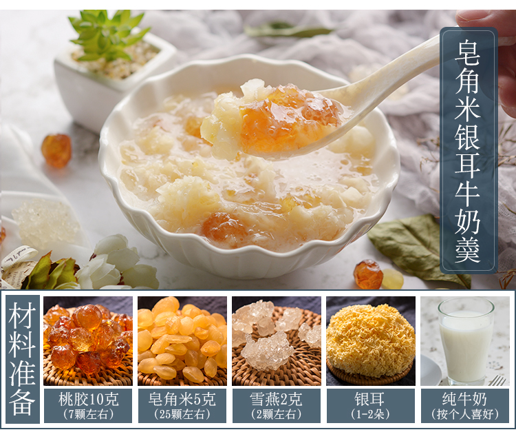 丰富的天然植物胶质,与皂角米、银耳搭配烹煮成汤长期食用降脂,解压嫩肤,超级美容养颜,纯天然,和血益气,女人吃它非常好啦!