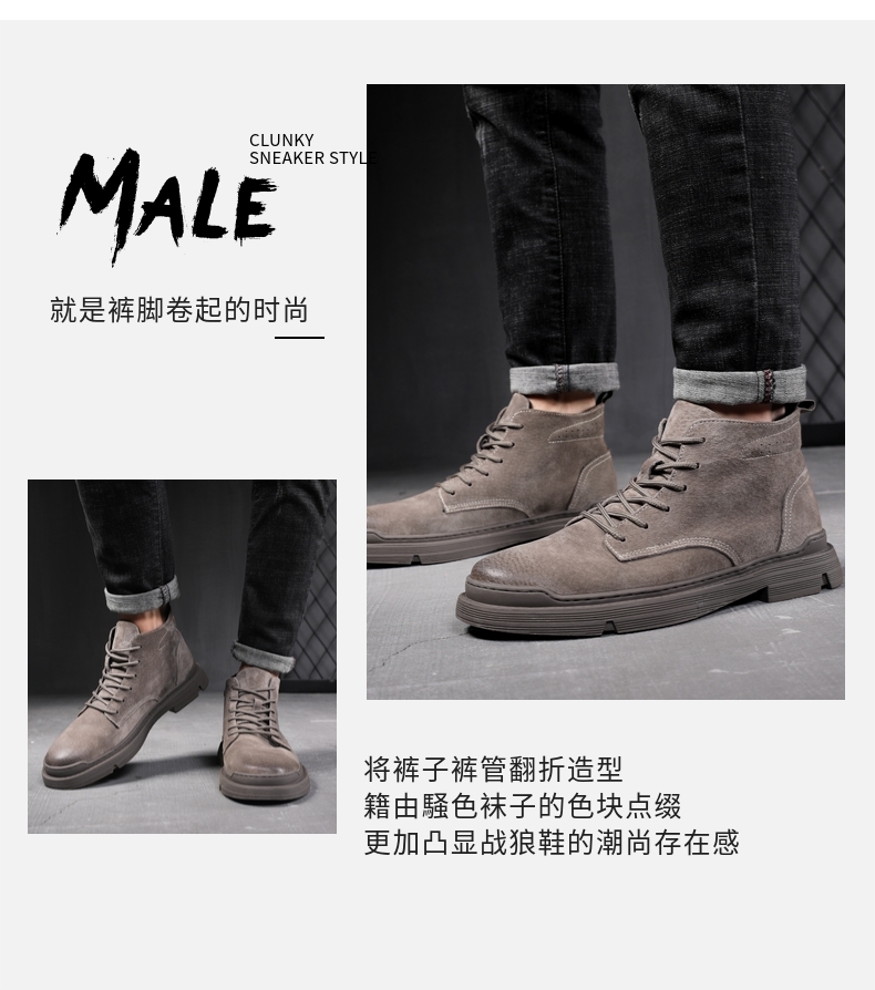 蒂尚高帮马丁靴男冬季保暖工装靴男中帮靴子男英伦风沙漠靴军靴潮