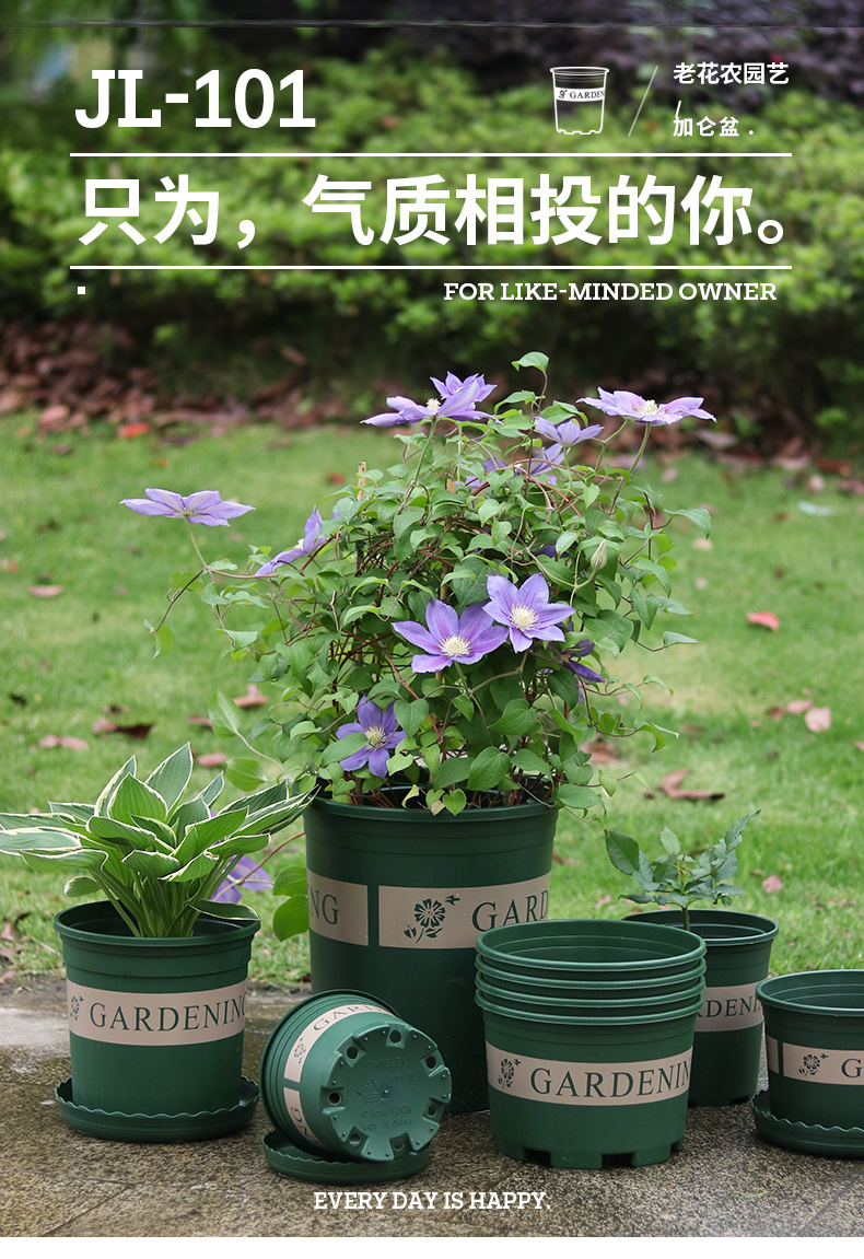 【买5送1】经典园艺花盆,简洁大方,正品加仑,便宜又耐用,采用pp树脂材料,强度高,韧性好,不变形,耐寒抗热,搭配接水盘,室内外通用,家庭月季绿萝种植常备花盆!