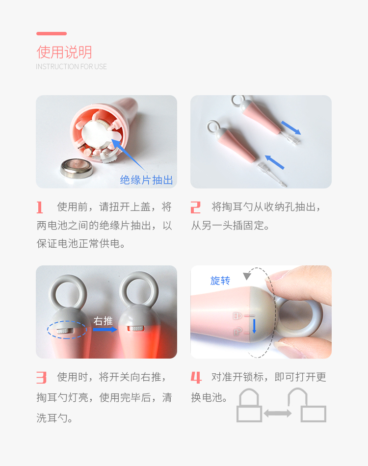 发光耳勺很好用,里面看的清晰了,这样不容易伤耳朵。小巧便捷,拿捏方便。全家都可用,长度适中,掏耳舒服。