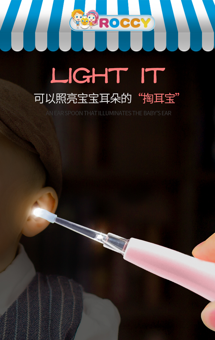 ROCCY新生婴儿掏耳勺挖耳勺宝宝发光掏耳神器儿童发光耳勺挖耳器