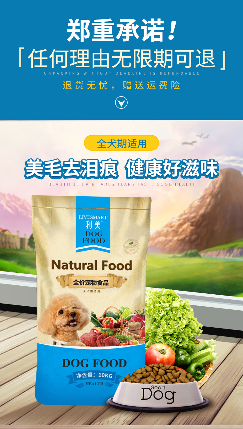 通用型狗粮20斤装10kg大小型犬比熊泰迪成犬幼犬鸡肉味大袋40专用