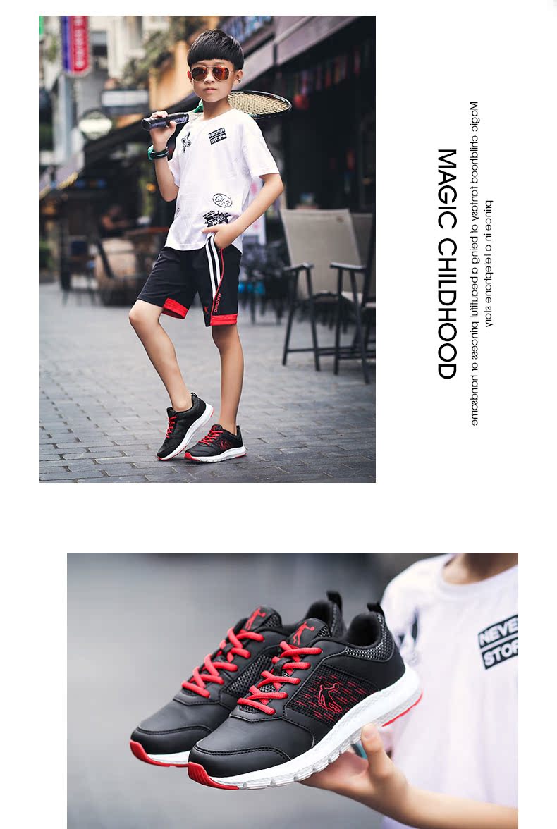 乔丹皮面儿童运动鞋男童2019秋新款中大童防滑耐磨防水跑步鞋童鞋