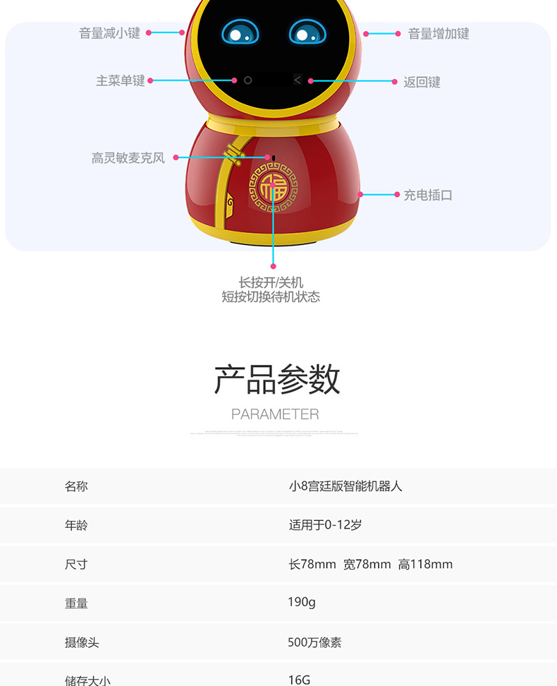 好儿优宫延版早教机器人,真人发音,远程看护,百科问答,视频通话,断网使用,小身材大智慧,挖掘天赋,陪伴孩子快乐成长!