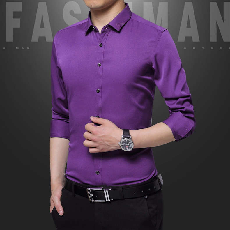 2019男士长袖衬衫修身韩版新郎衬衣纯色青年商务职业装短袖寸衫C