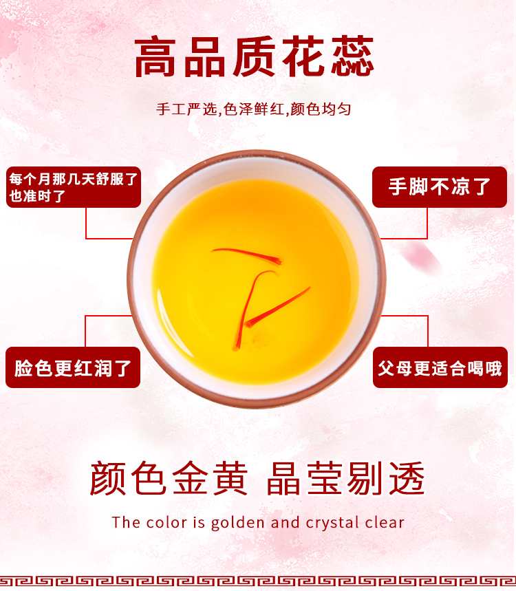 宫寒克星,丝丝精选,特级品质,营养价值高,具有活血化瘀+凉血解毒+解郁安神+美容养颜等功效!每次3~5根泡一杯水,气色红润,好花养出好女人!【赠运费险】