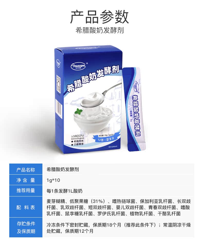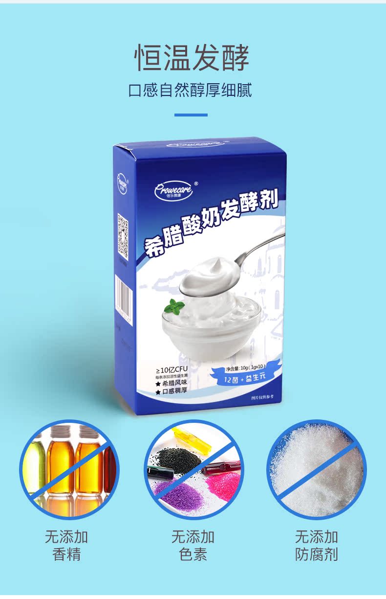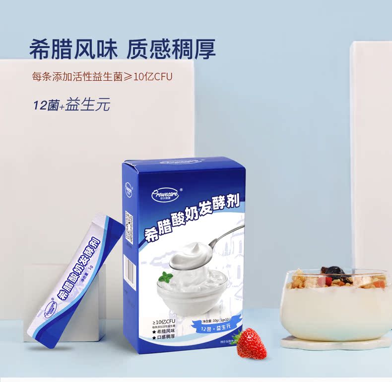 希腊酸牛奶发酵剂,12种益生菌,真蜜饯软果,口感醇厚,简单易制,营养健康又放心,让酸奶陪伴您一整天。