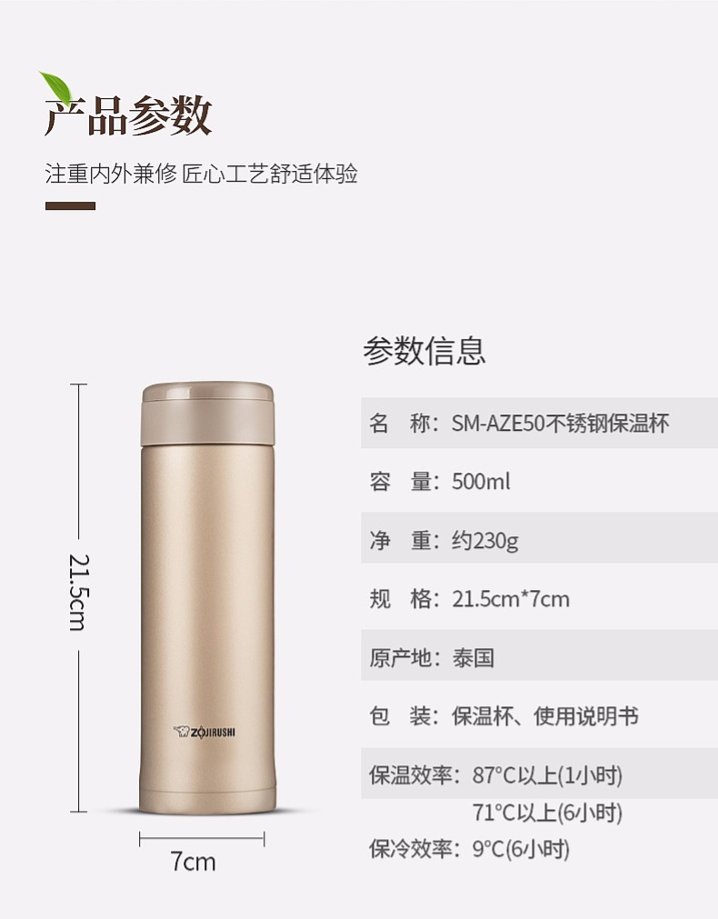 象印保温杯进口不锈钢茶杯男女学生便携水杯大容量定制刻字AZE50