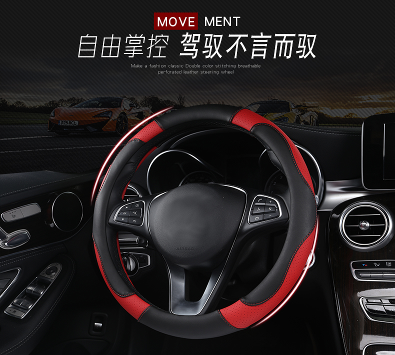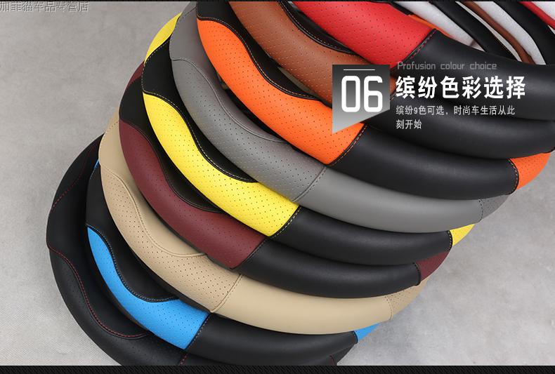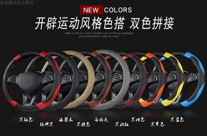 皮革防滑方向盘套,四季通用款,吸汗透气,运动风双色拼接,多色可选,高雅大气~