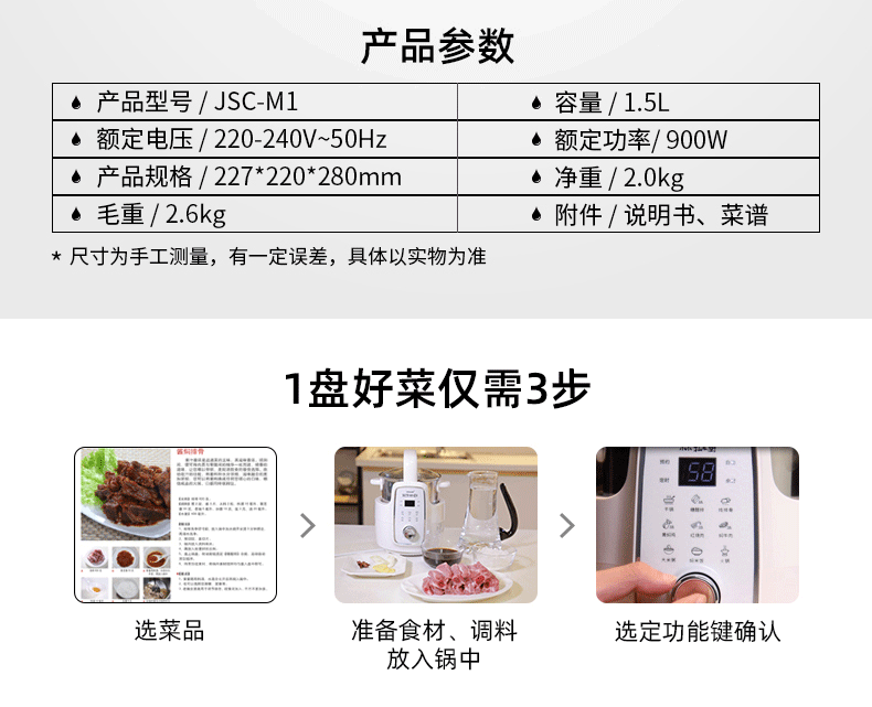 【捷赛】9大功能设置,智能火力调节,煎炸炒炖样样都行,自动收汁,防糊防溢,高厨手艺,绝不凑合,大菜名菜家常菜全能搞定,送菜谱,让你轻松在家做大厨!【赠运费险,质保一年】