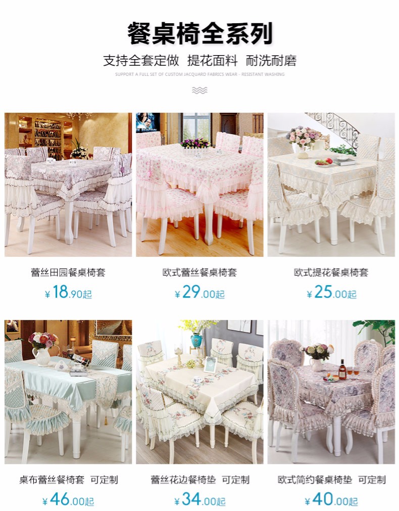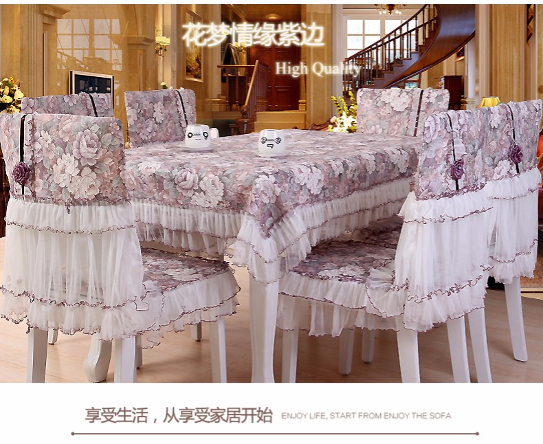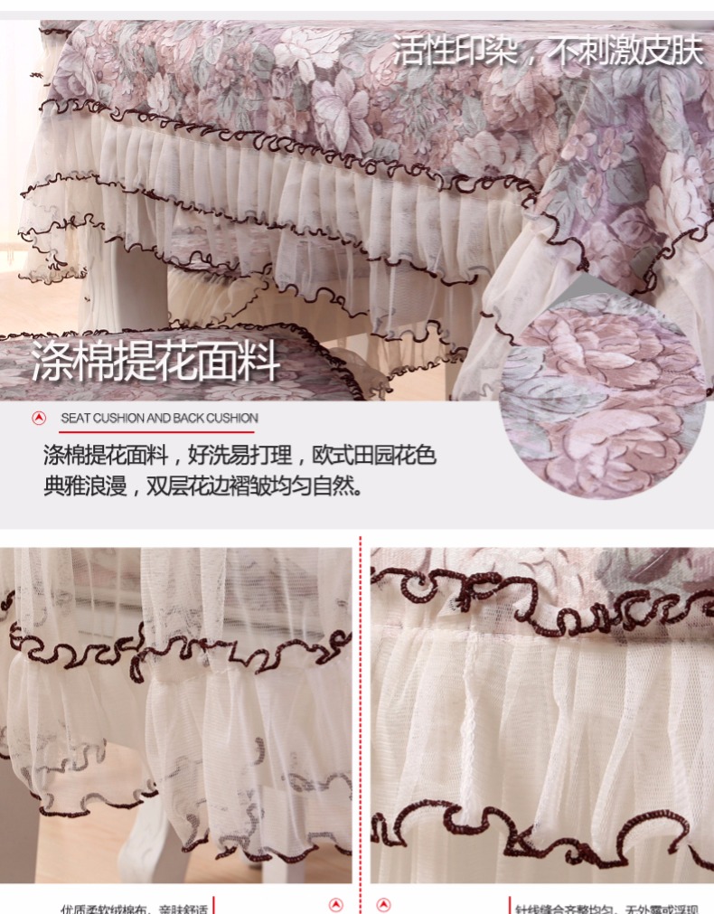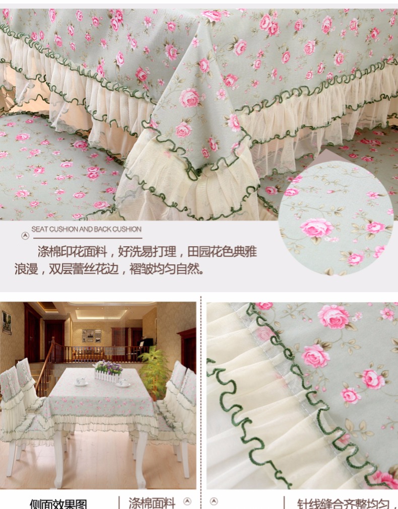 田园桌布布艺田园餐桌布椅垫椅套套装欧式蕾丝茶几布餐椅垫椅子套