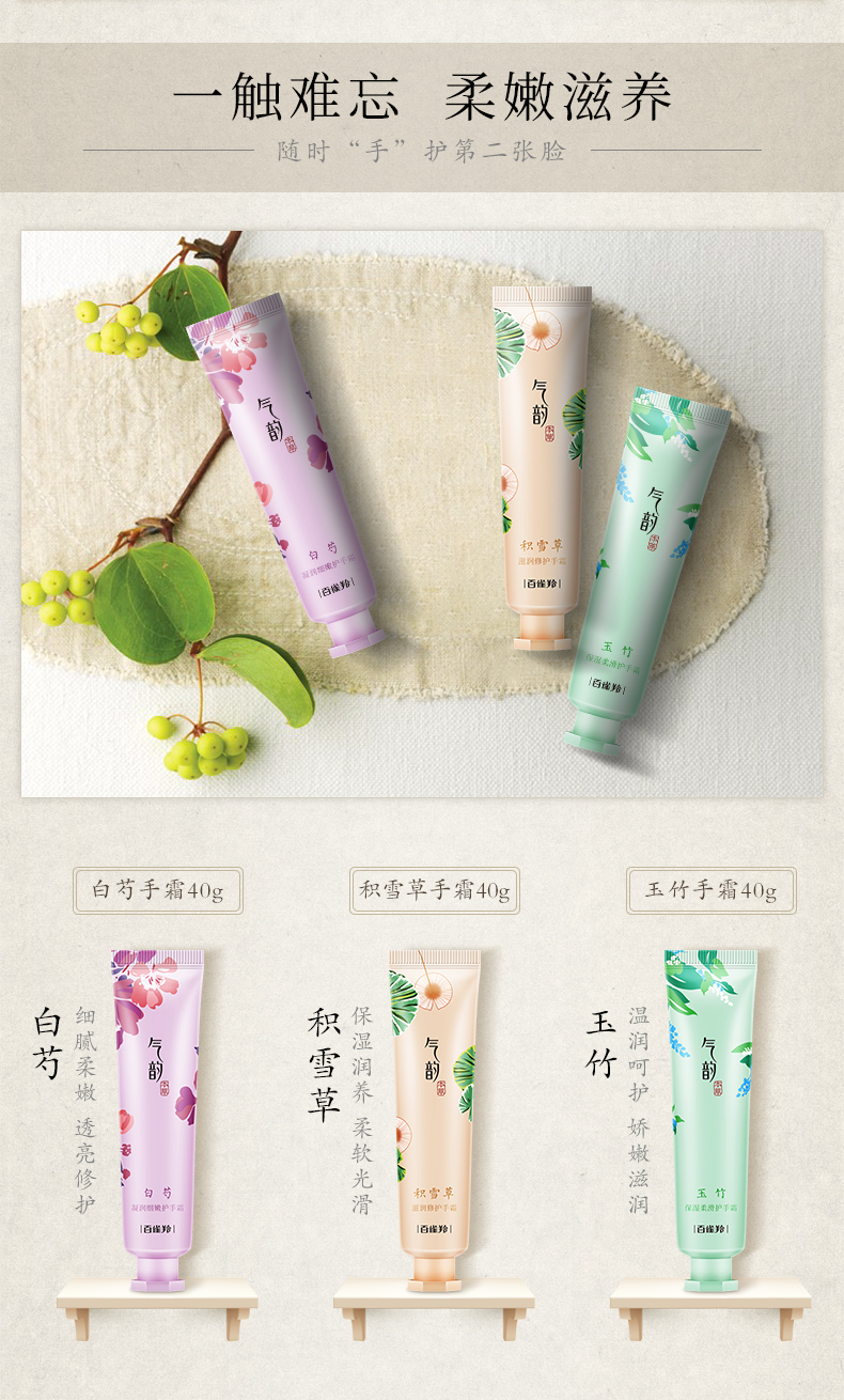 百雀羚护手霜夏季不油腻气韵便携小巧随身手部套装女滋润保湿补水