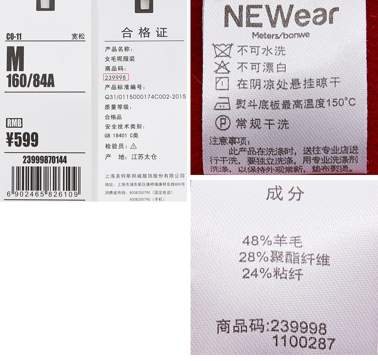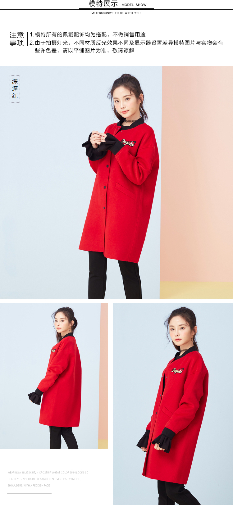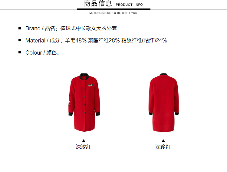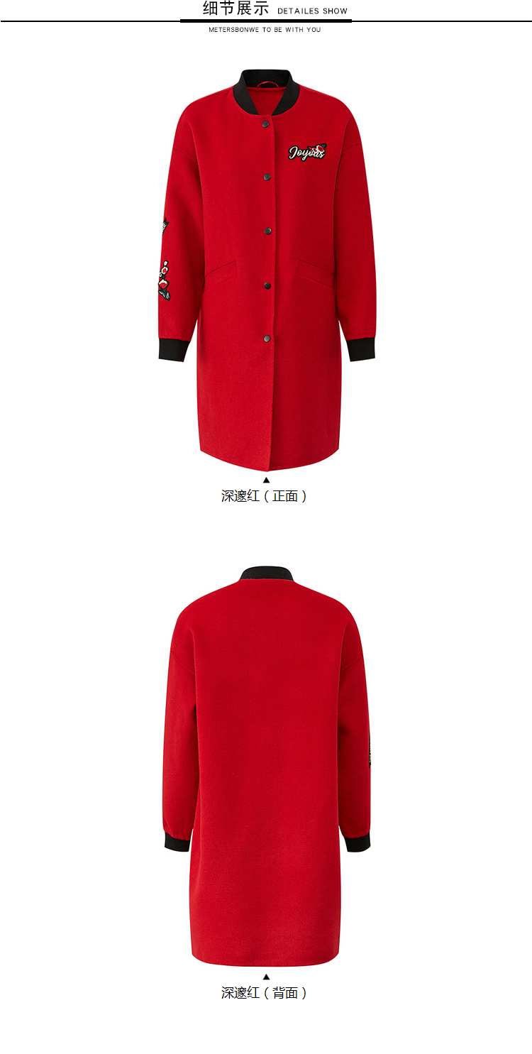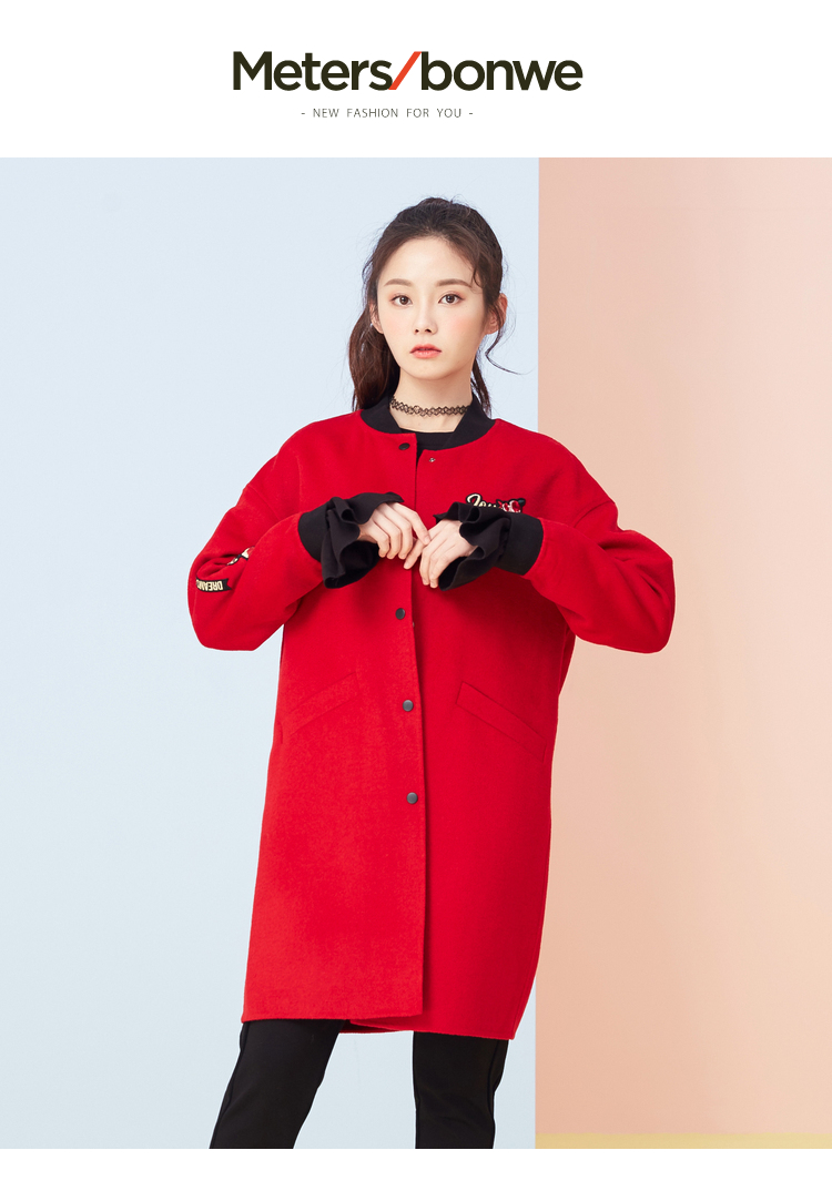 美特斯邦威毛呢大衣含羊毛61%女中长款冬季格纹圣诞节大衣商场款
