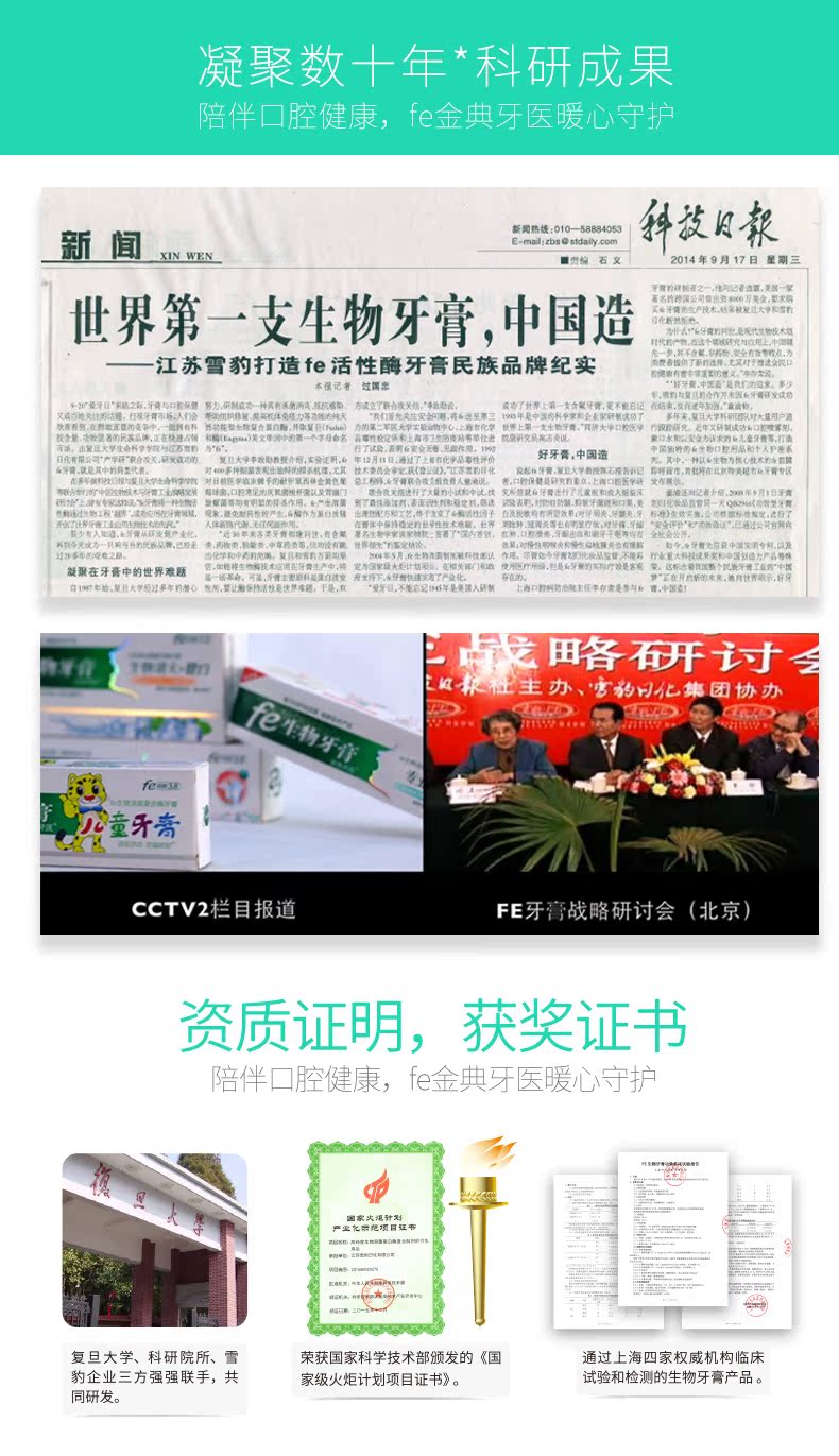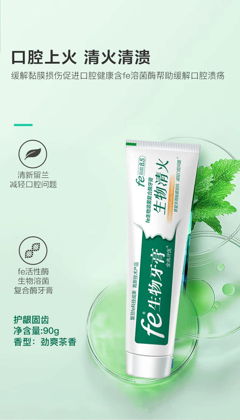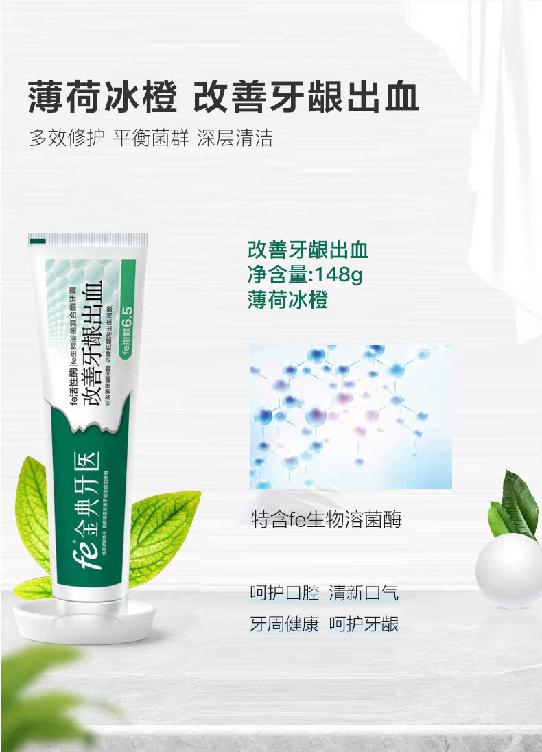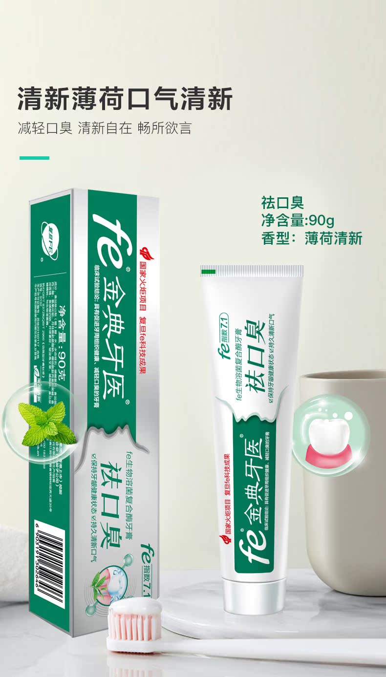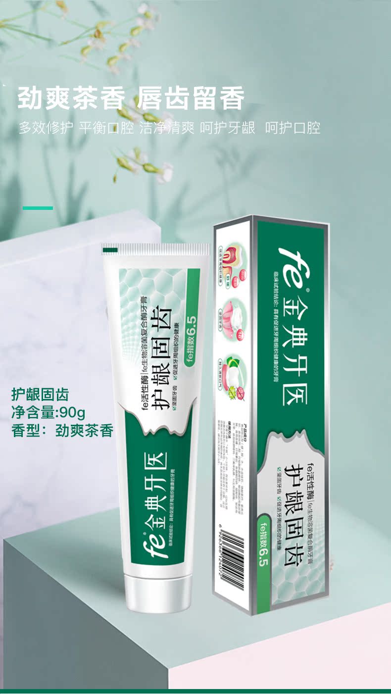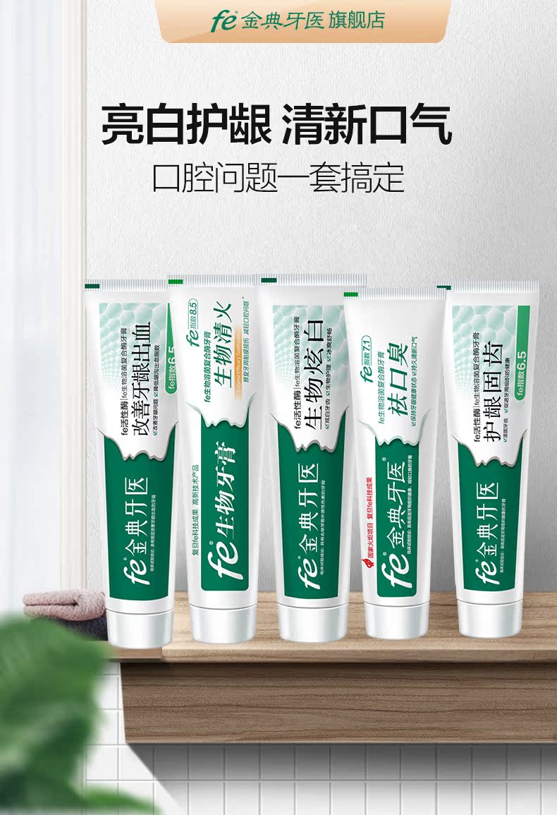 【fe金典牙医旗舰店】高品质牙膏,复旦大学研发,修复口腔损伤组织,口气酶fe指数9.3,生物美白,清火去口气,国家认证,保证有效!值得信赖